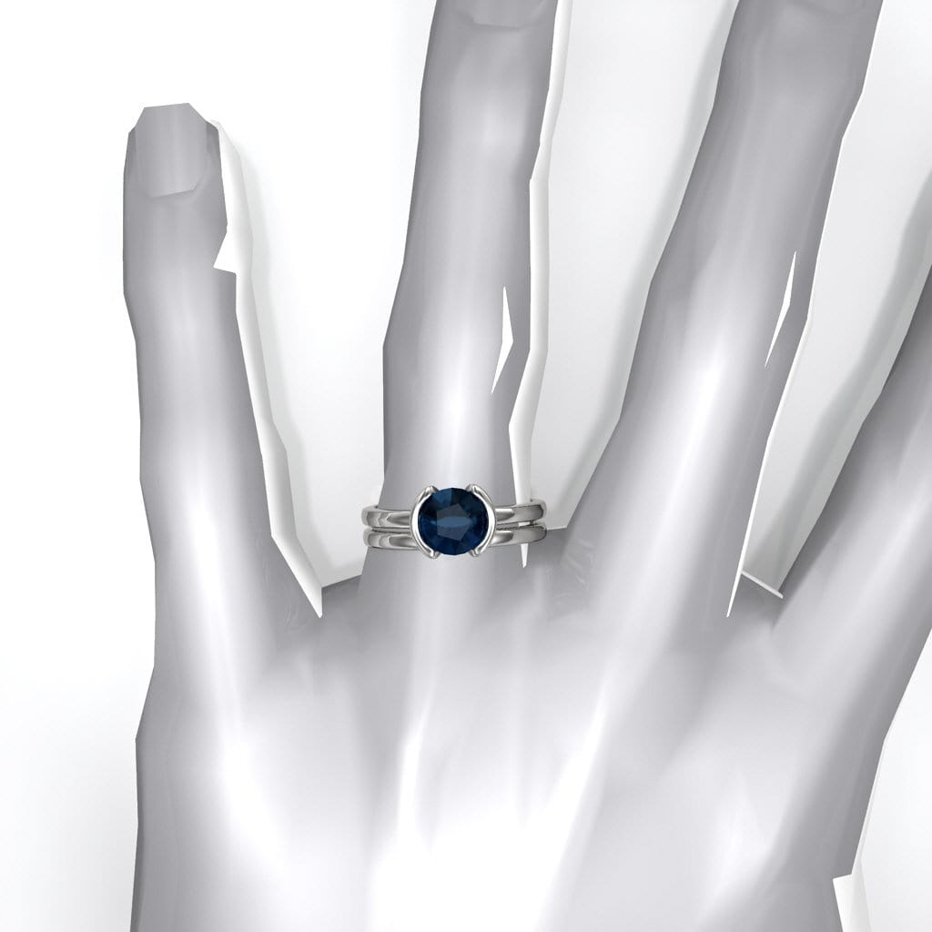 The ring is best worn by itself or stacked with curved or pointed nesting bands (sold separately). Straight bands will not sit flush. A matching 2mm wide curved band similar to the options shown in some pictures is available upon request. Please contact us for a custom quote.