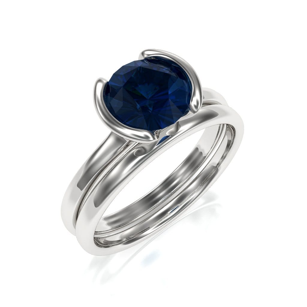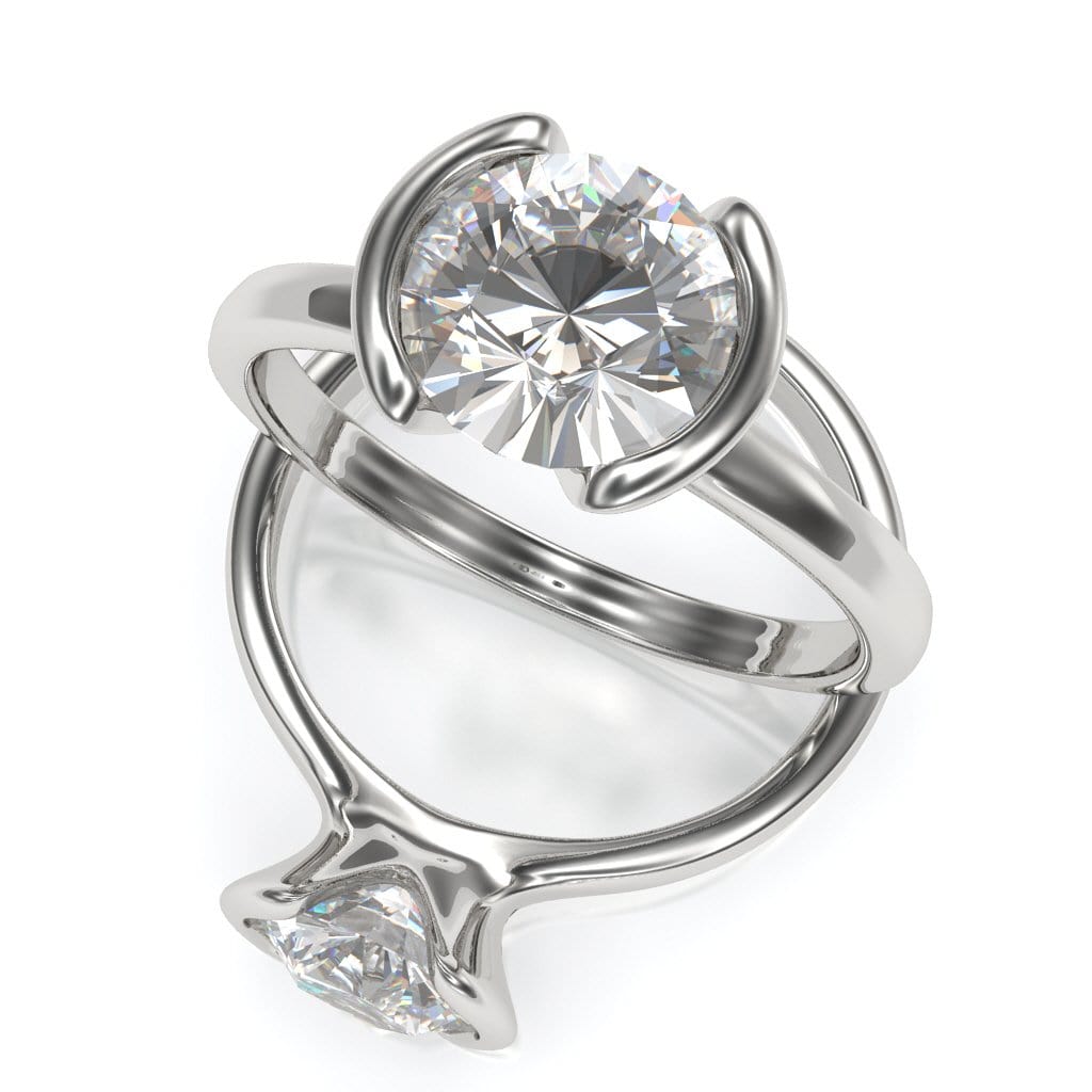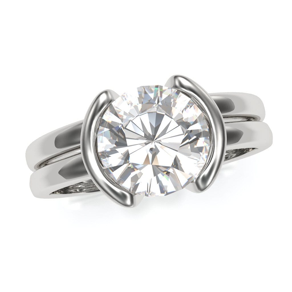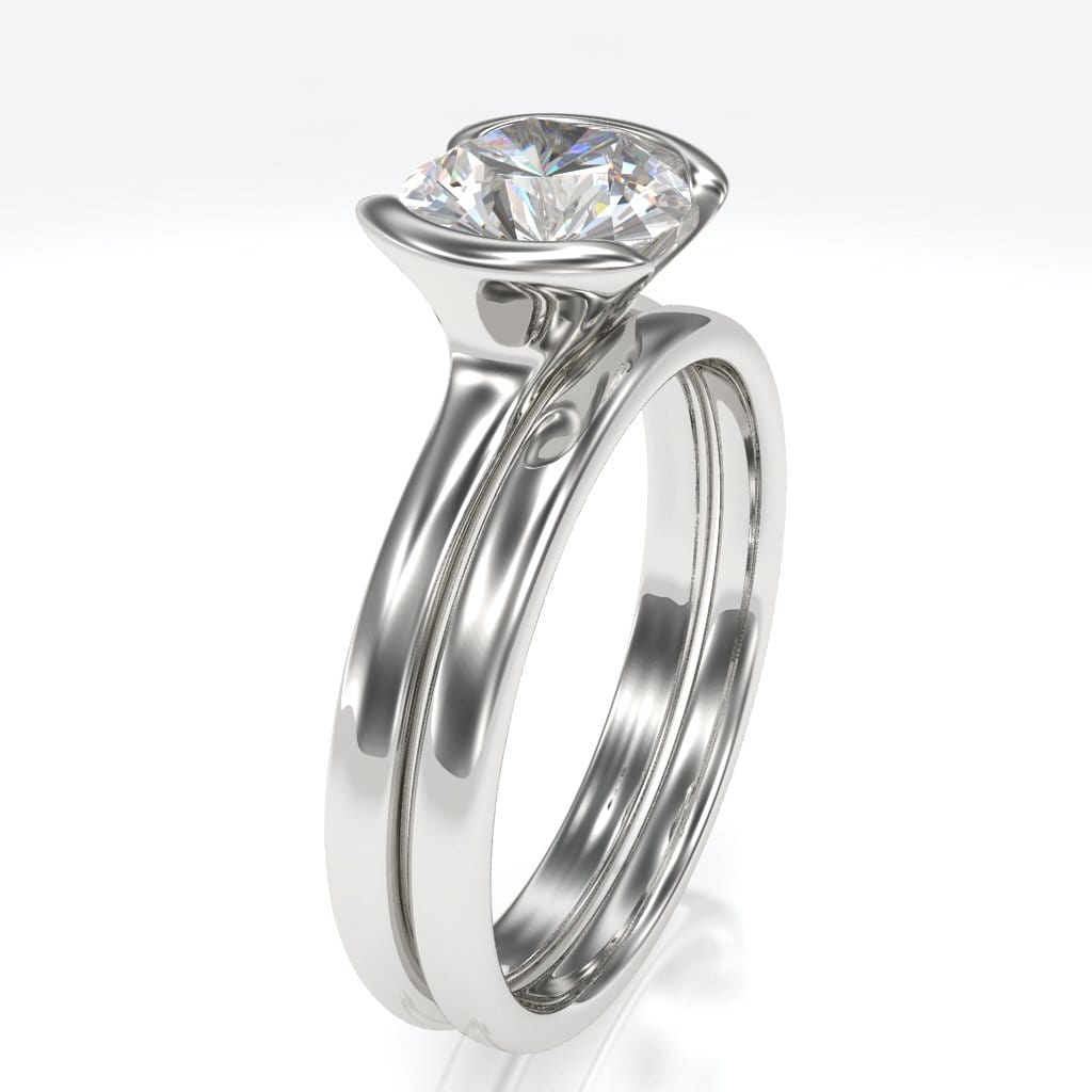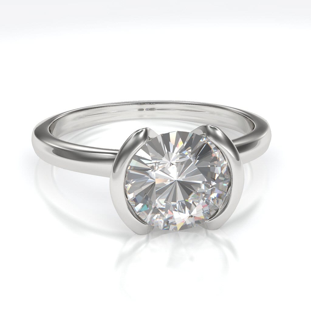 Hannah Half Bezel Set Solitaire Low Profile Engagement Ring - Setting only