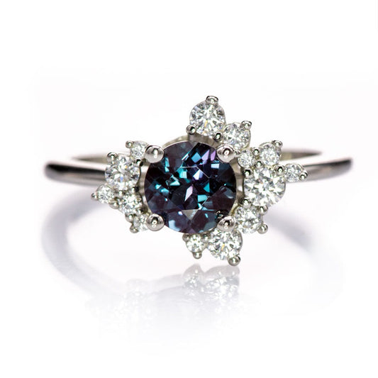 I got the setting in platinum and chose a cushion cut green lab sapphire. It's understated yet sparkly, and goes well with me wedding band. It's just the ring I've always wanted!
