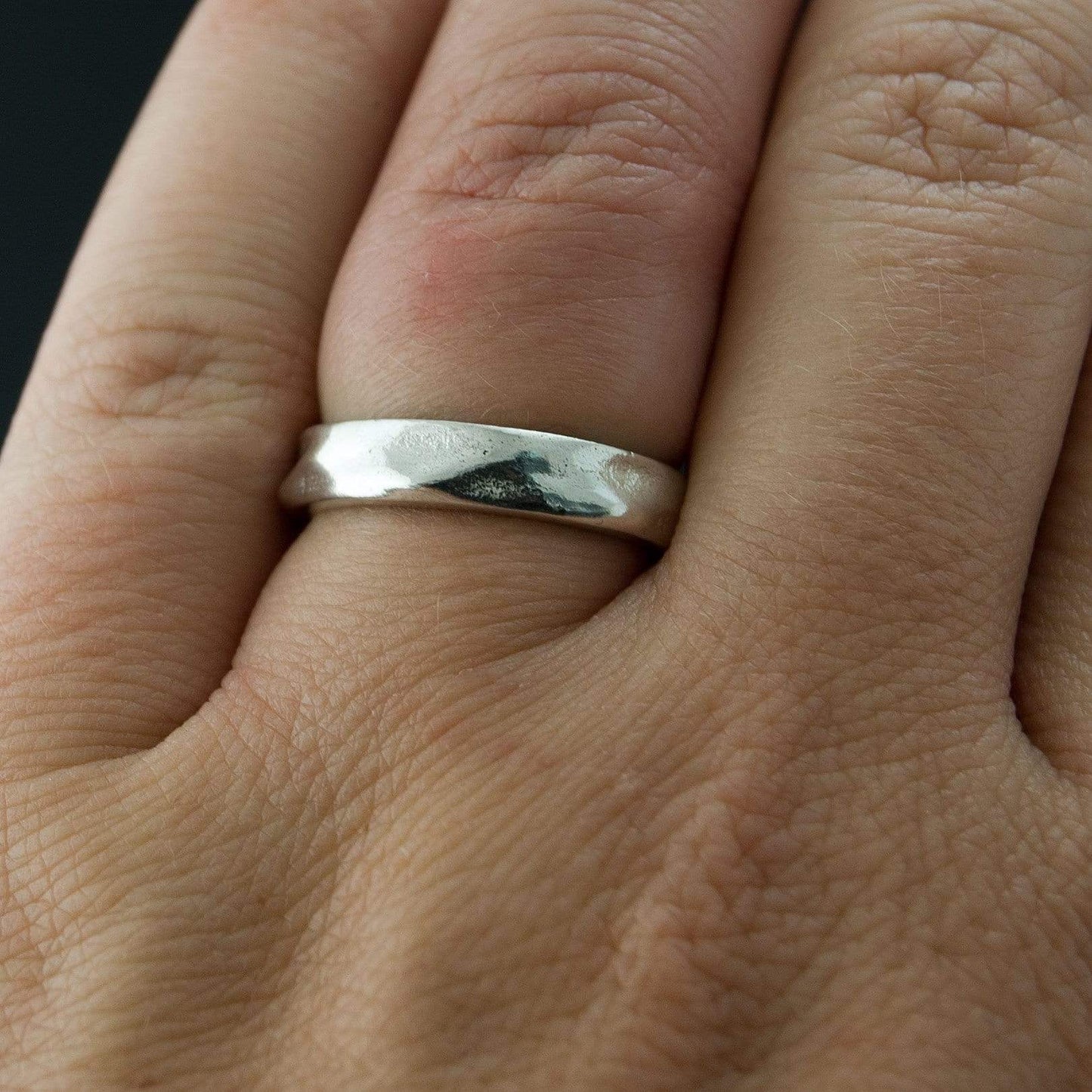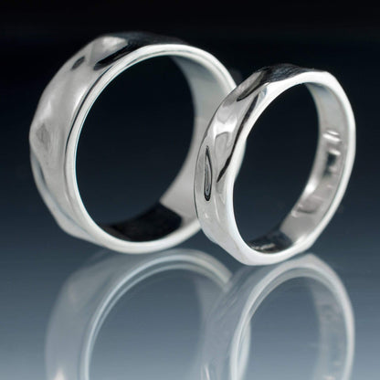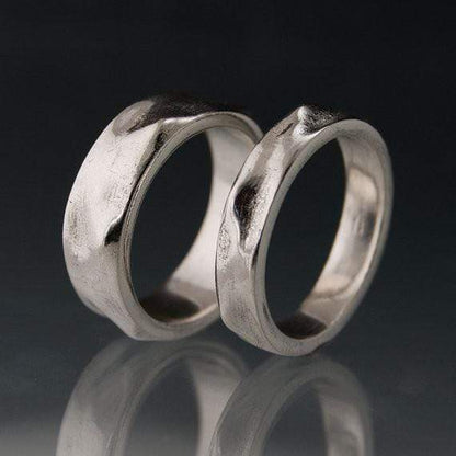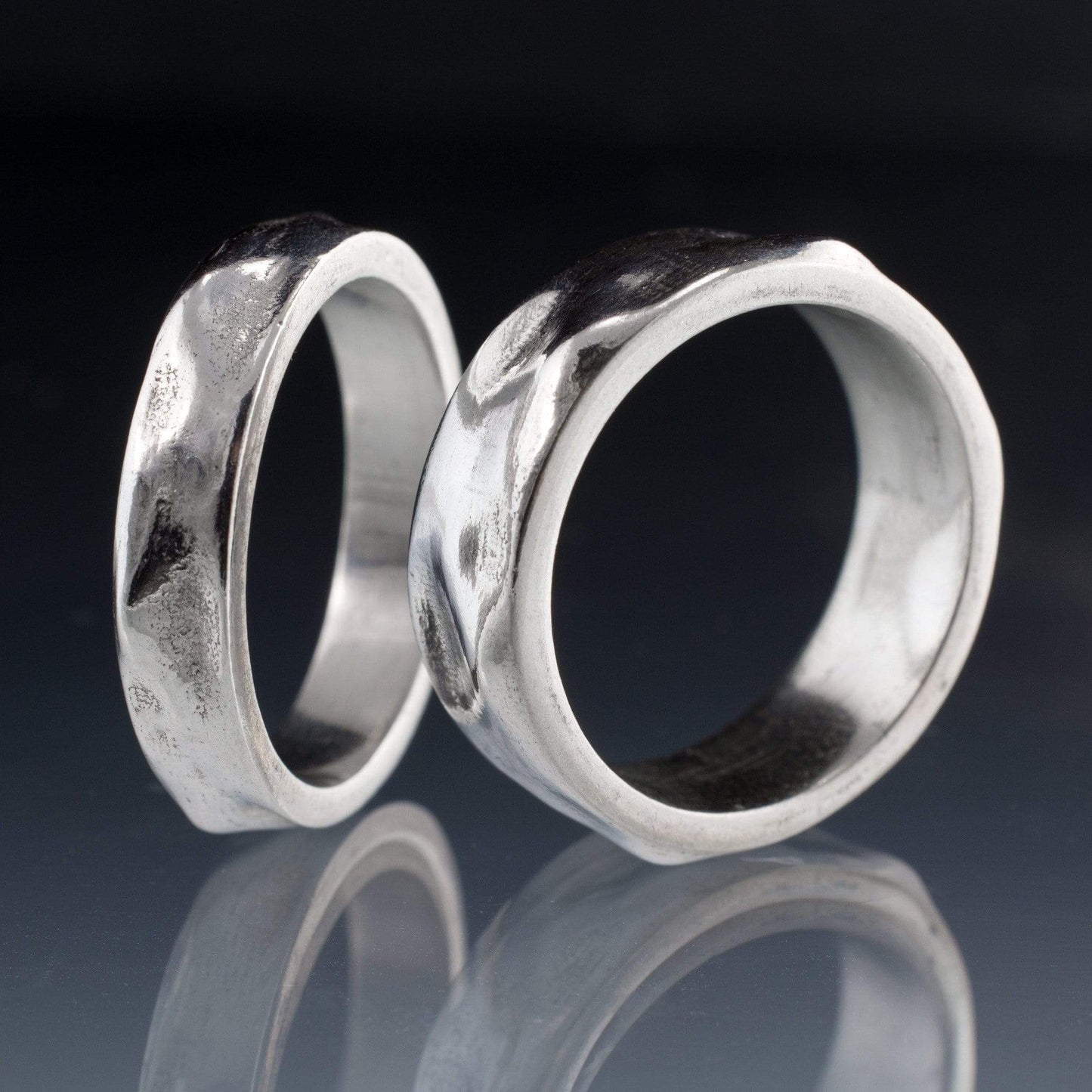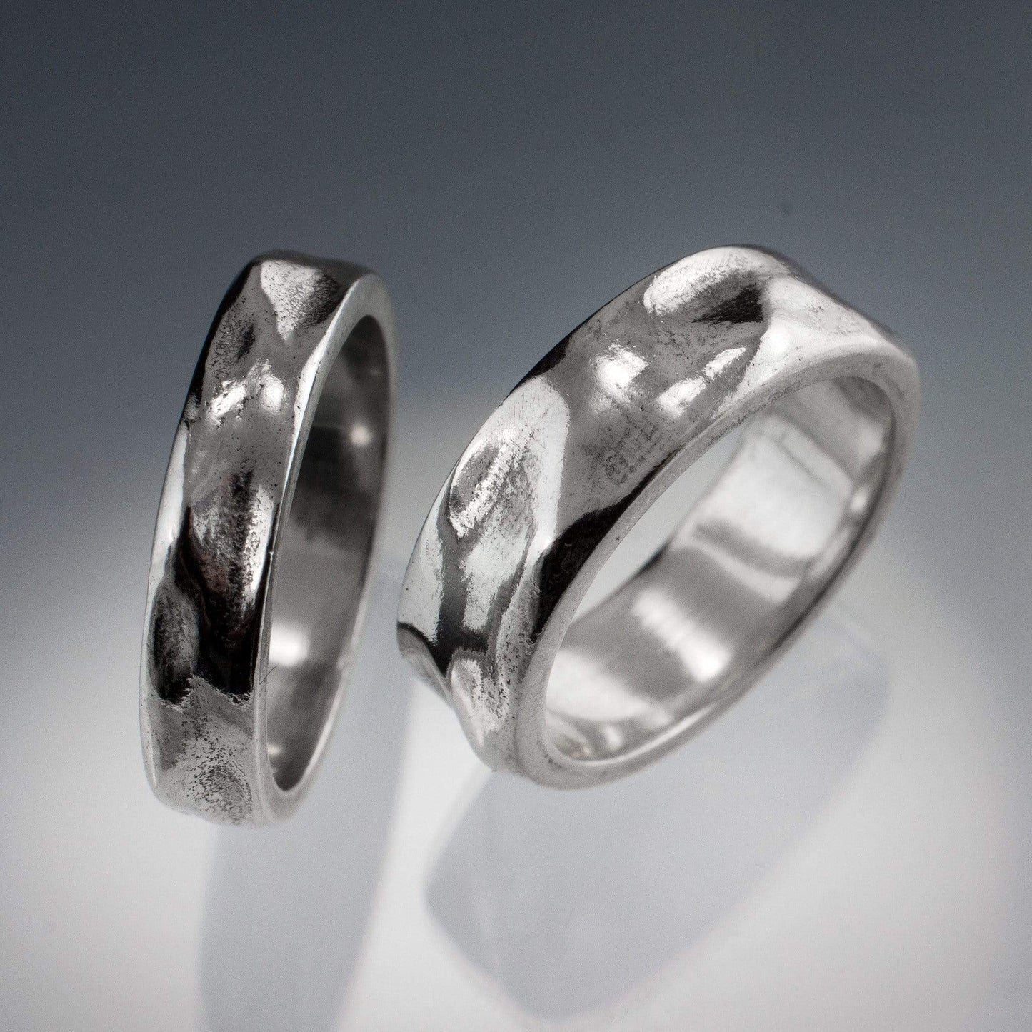 Wrinkly lightly textured wedding ring band inspired by the movement in silky fabric and rippled water surfaces.