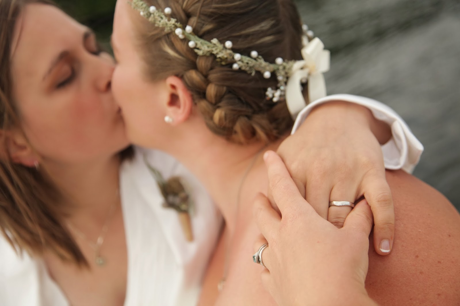 I got a really nice surprise note a couple days ago from Melissa and Jessica. I had made their engagement rings last year in Spring and then a couple month ago their matching wedding bands. They brought some happy tears into my eyes by sharing photos from their wedding in August and giving me one of the best thank you notes one can hope for.