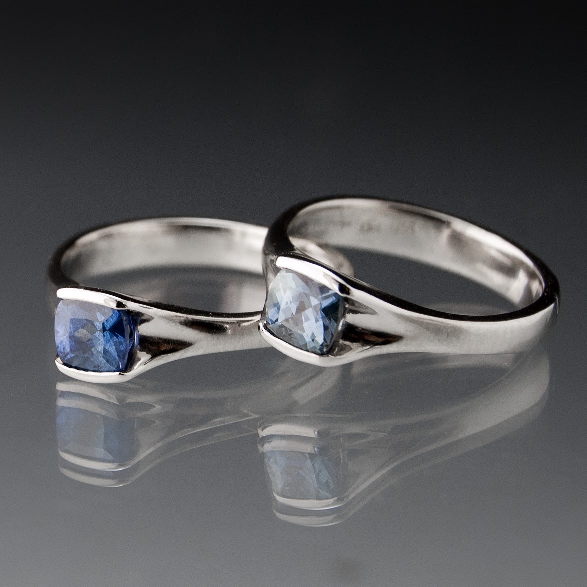 The engagement rings I made were done with Fair Trade cushion cut Malawi sapphires from Columbia Gemhouse. Melissa had expressed her wish for a sustainable option for the rings. The palladium for the rings was already recycled precious metal as all the metal I use is recycled.