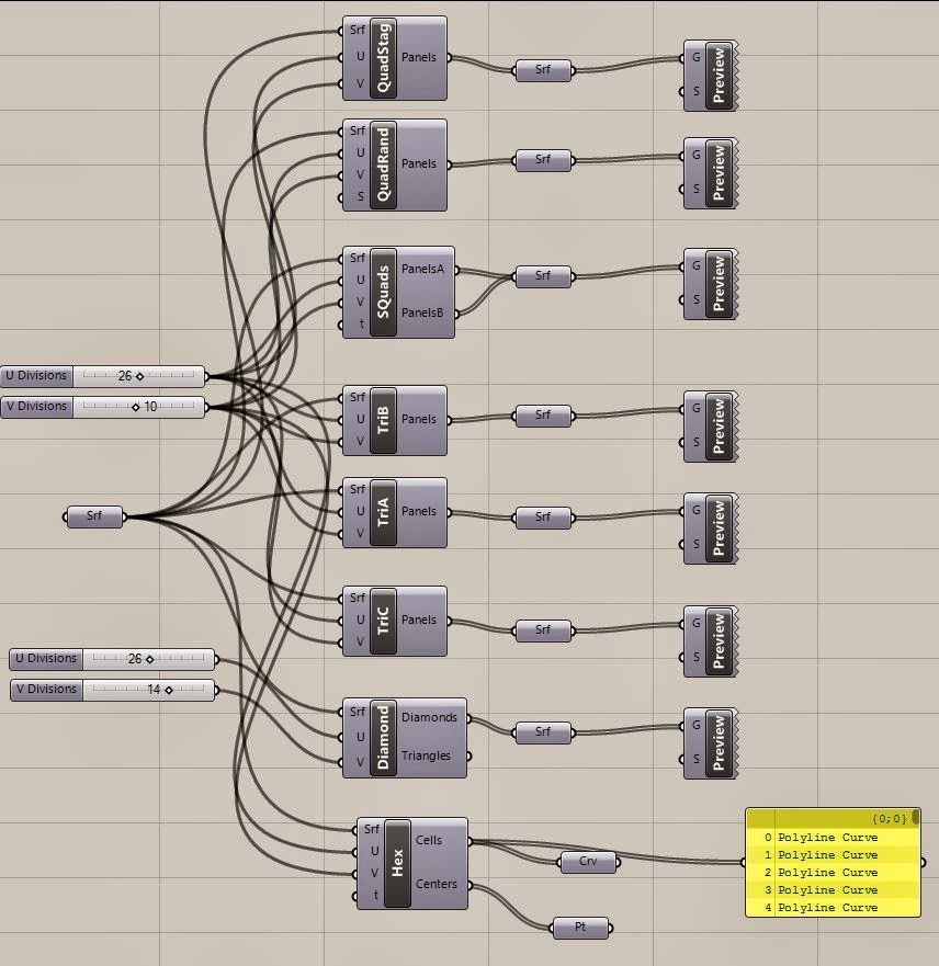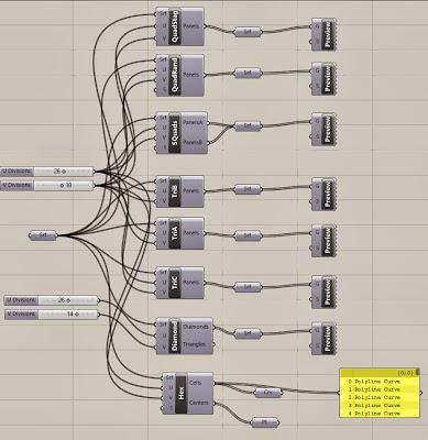 There were other panel options too for the rings, here shown in a computer rendering. Panels can be squares, triangles, diamonds, skewed or staggered quads. Could not figure out how the hex panel tool works. Next time.