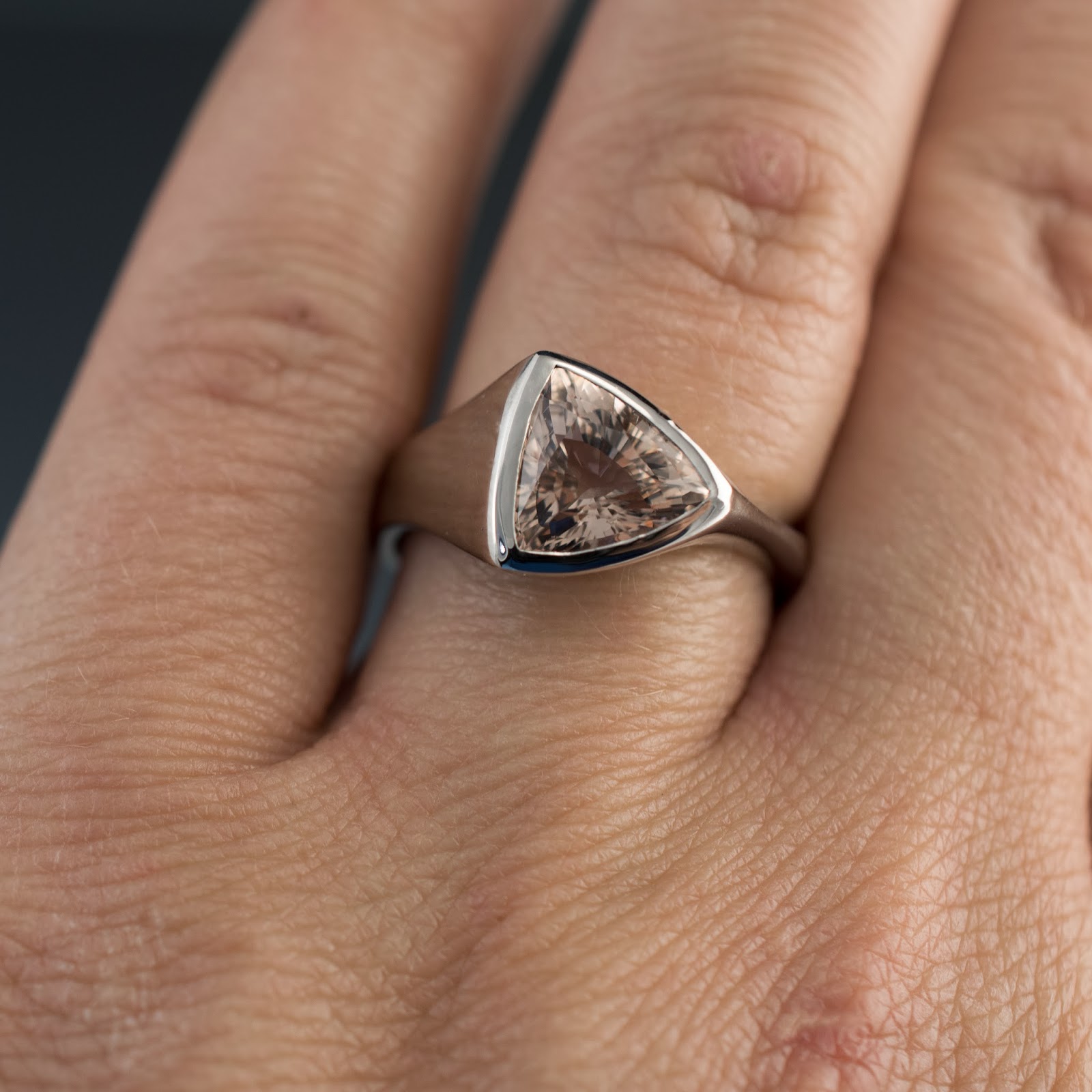Last week this trillion Morganite ring in palladium sold and got finally completely finished up.