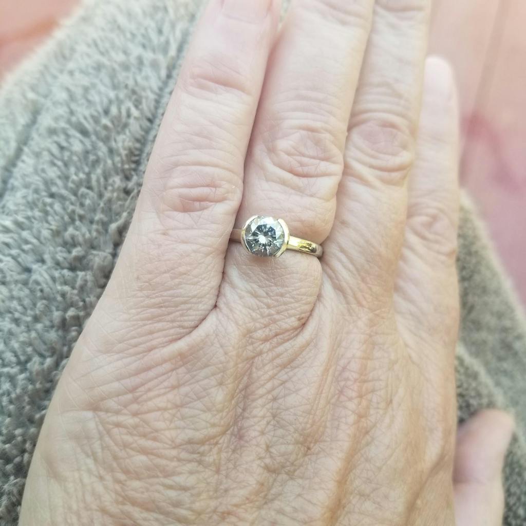 My ring was even more beautiful in person! The craftmanship was amazing, the style of half bezel fit the light gray moissanite so well. It fit perfect, and sparkles red no less! I am absolutely in awe of this ring, it is so unique. So happy my man got this for me, I love it! I've gotten so many compliments on it! Will not hesitate to purchase from Nodeform again and highly recommend them !