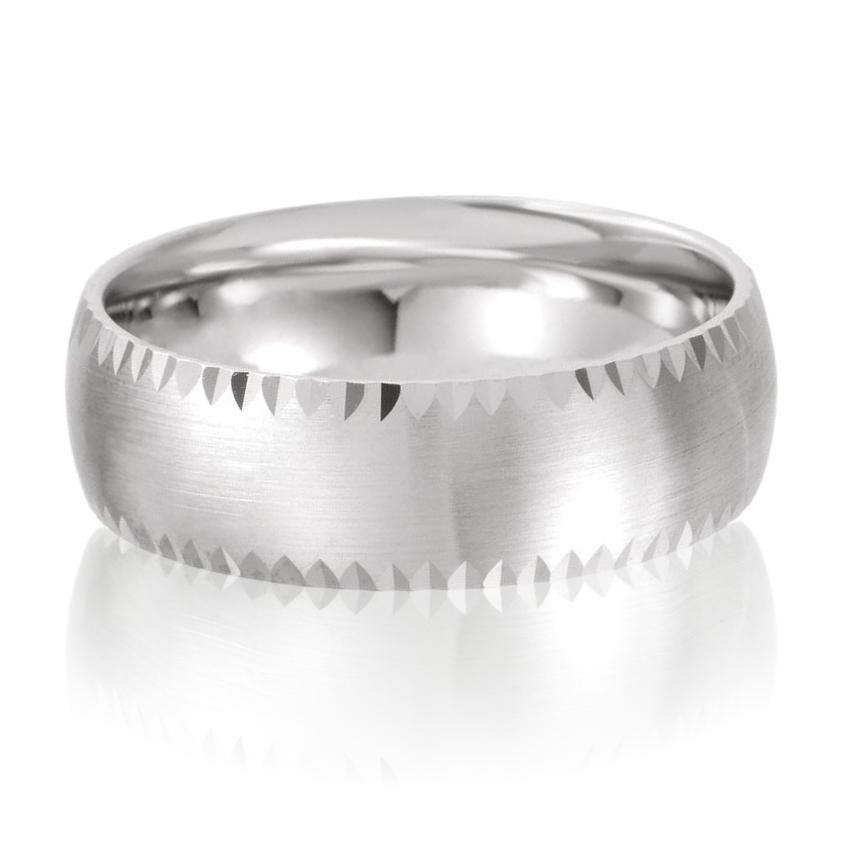 7mm Wide Scalloped Edge Domed Comfort-fit Men's Wedding Band