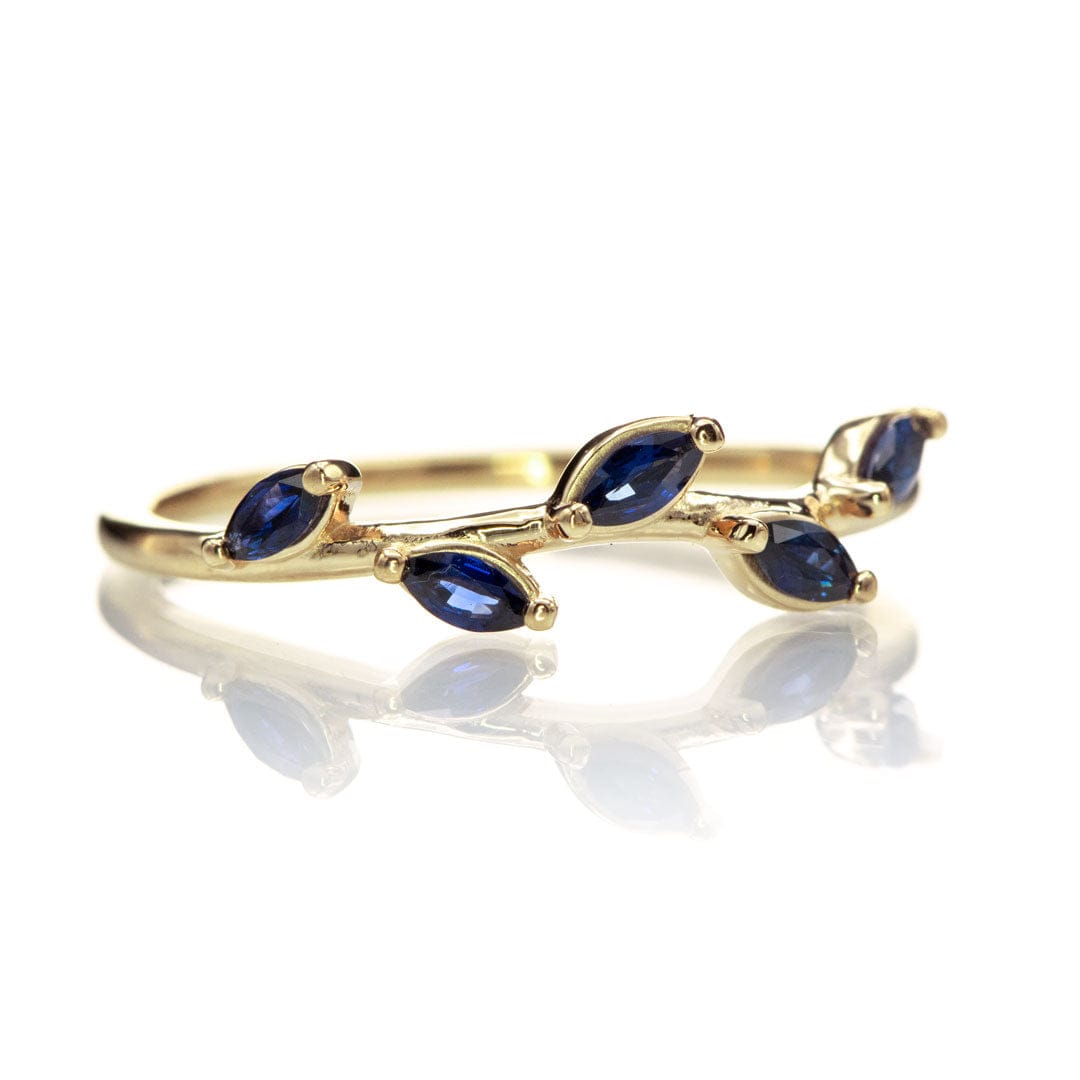 Phyliss -  a delicate leaf-inspired stacking anniversary ring with a choice of marquise blue sapphires or rubies.