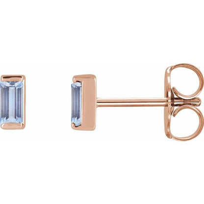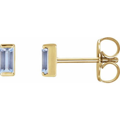 Channel-set Baguette Tanzanite Gold or Platinum Stud Earrings