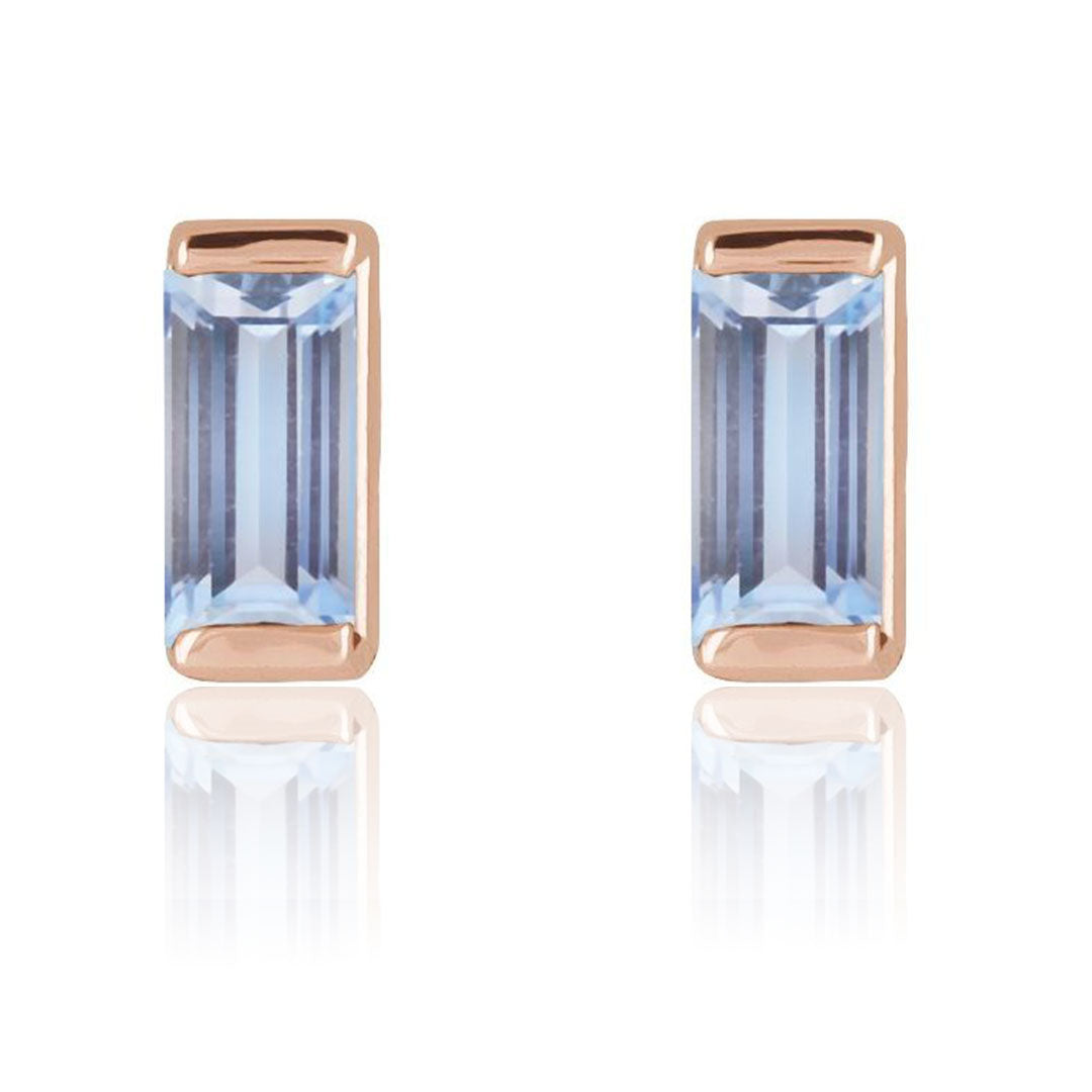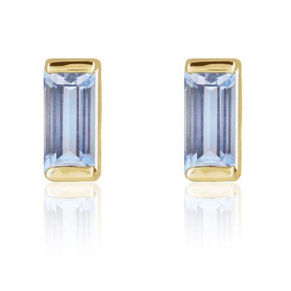 Minimalist 14k gold stud or platinum earrings for everyday wear with channel set beautiful baguette shape Tanzanites.
