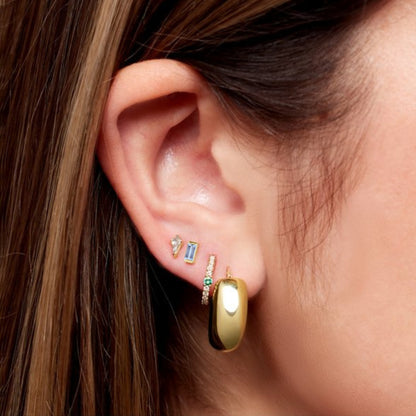 The simple earrings measure 5.25x2.3 mm. The studs are finished with a polished finish.