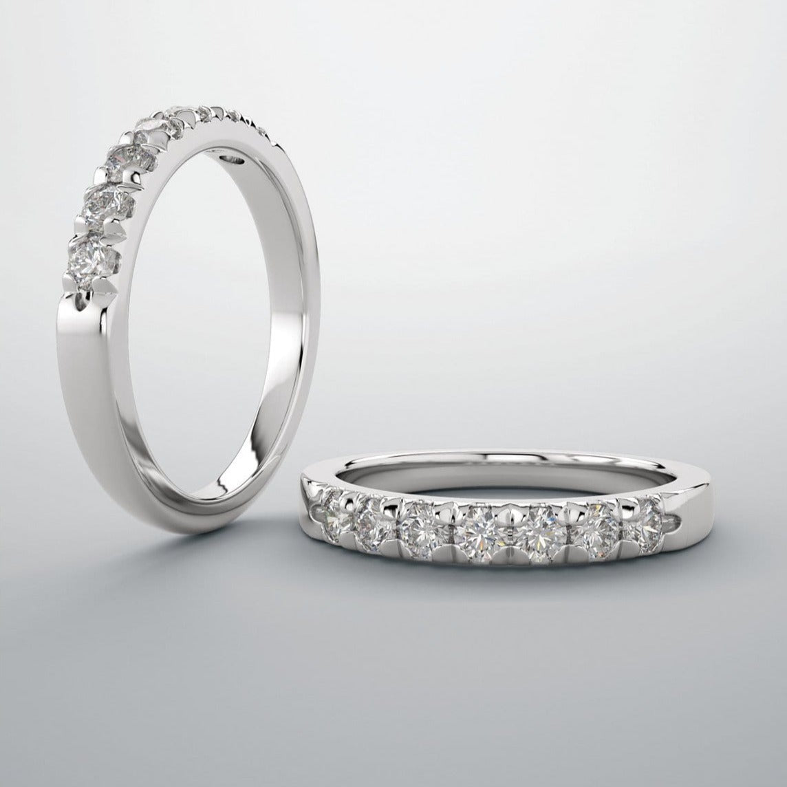 Freya Anniversary Band - French Set Moissanite or Diamond Pave Ring Stacking Wedding Band