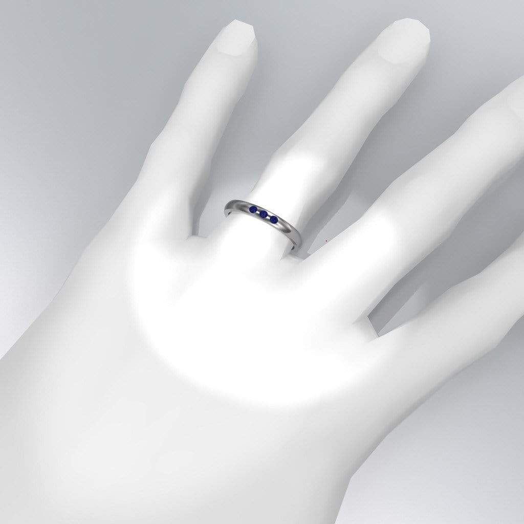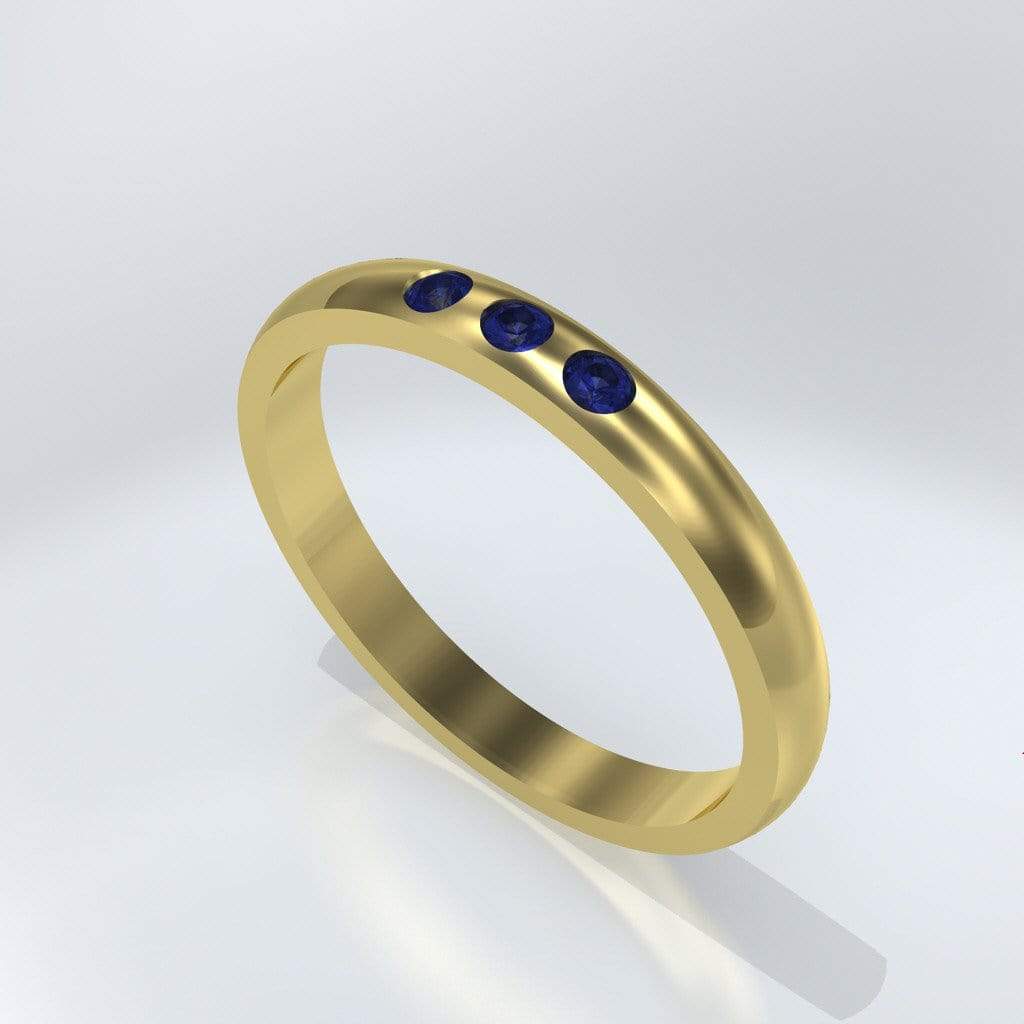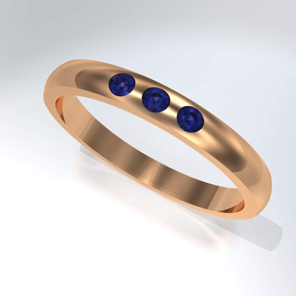 Dana Ring - Narrow 2.5mm or 4mm wide 3 Blue Sapphire Flush Set Domed Wedding Band