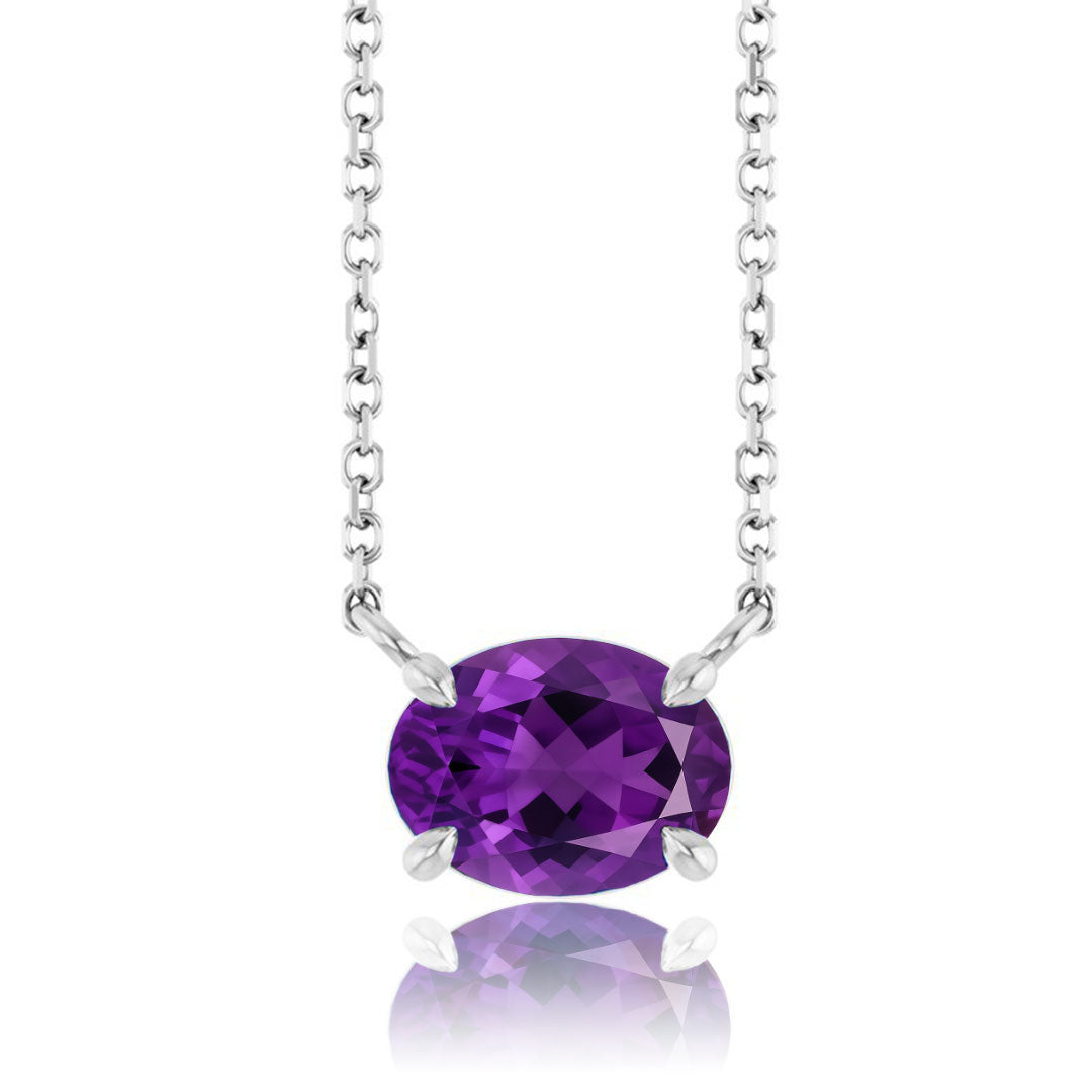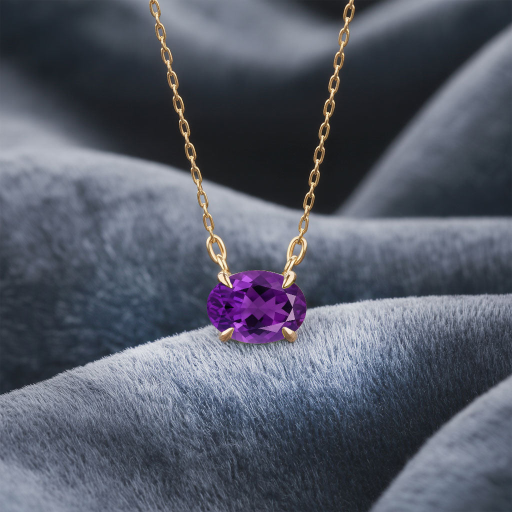 Oval Amethyst Prong Set Birthstone Pendant Necklace