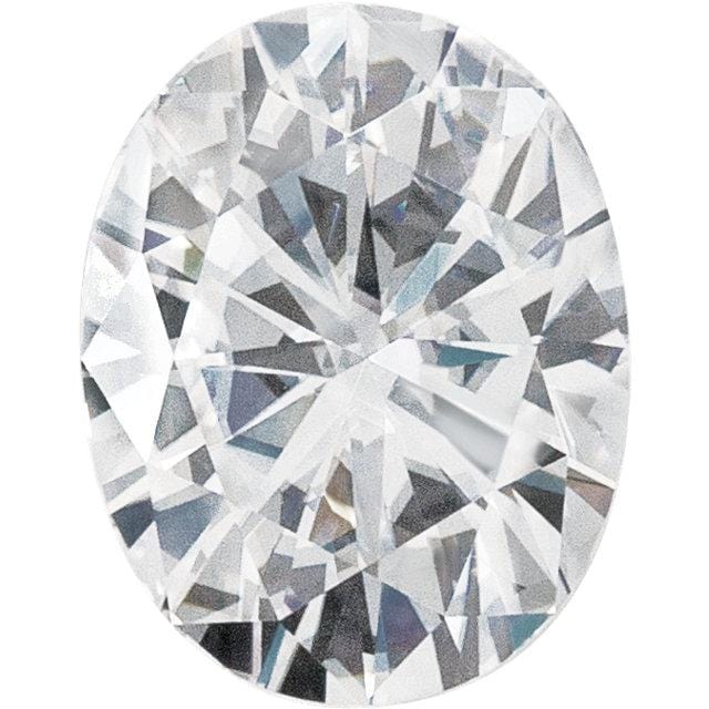 Carat Weight is actual moissanite weight and not diamond equivalent weight. See for more moissanite information here. Diamonds are about 10% heavier. An 8x6mm oval diamond would be about 1.5ct. Diamonds often cut in a more elongated shape than oval moissanites.