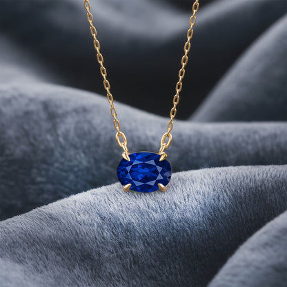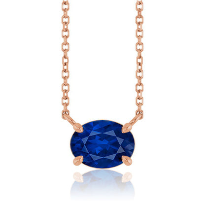 Oval Lab-Grown Blue Sapphire Prong Set Birthstone Pendant Necklace