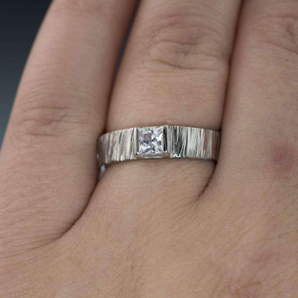 I got the setting in platinum and chose a cushion cut green lab sapphire. It's understated yet sparkly, and goes well with me wedding band. It's just the ring I've always wanted!