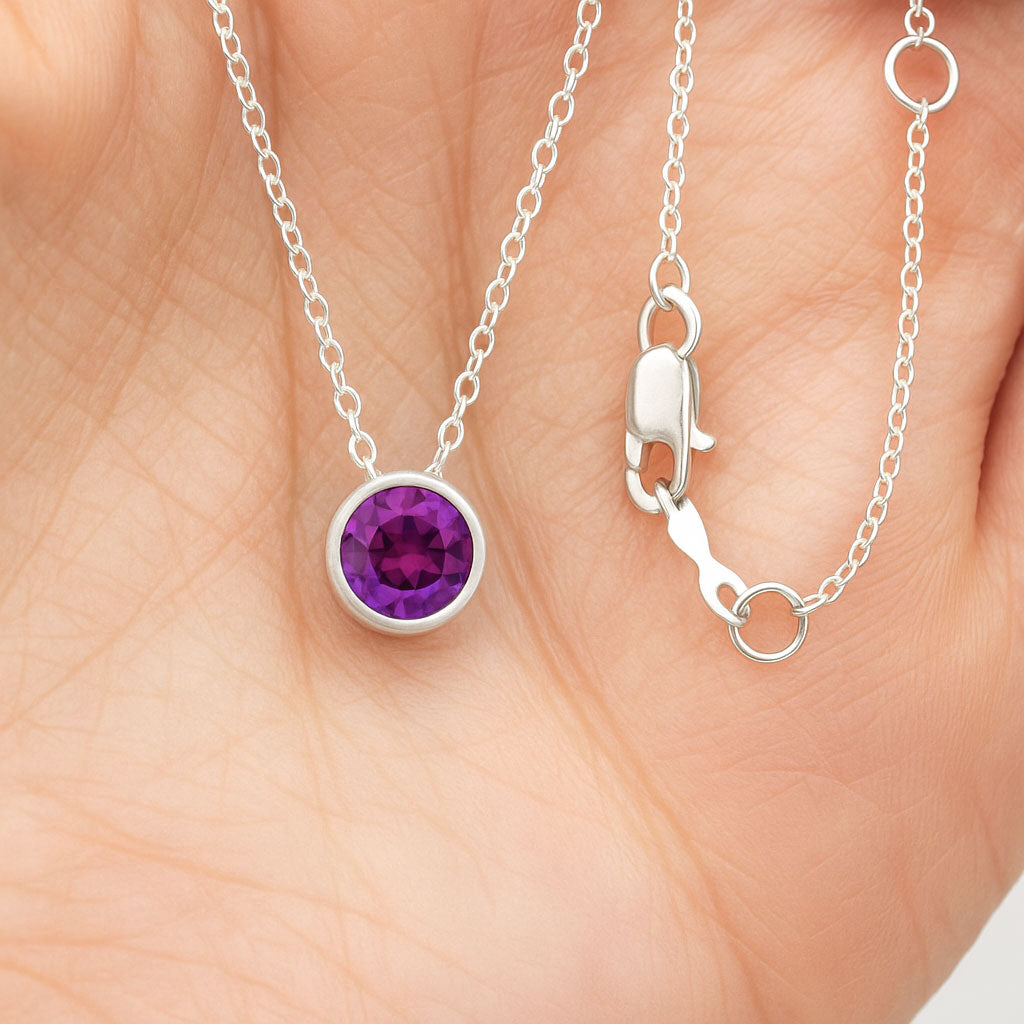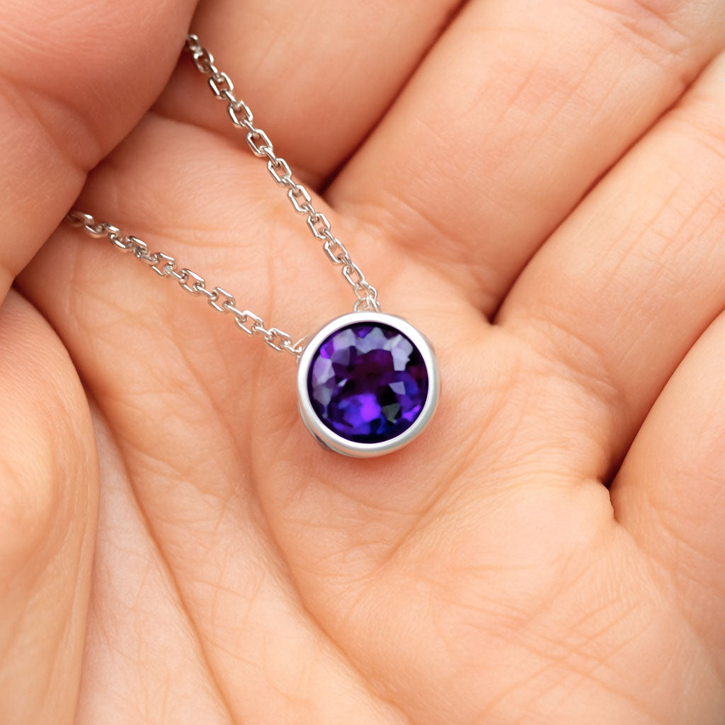 Elevate your style with this Round Amethyst Sterling Silver Slide Pendant Necklace. Featuring a vibrant, natural amethyst gemstone set in a sleek sterling silver slide pendant, this necklace offers timeless elegance and a modern touch. The round-cut amethyst shimmers with rich purple hues, making it a perfect statement piece for any occasion. The adjustable sterling silver chain ensures a comfortable fit, whether worn alone or layered with other favorites. Ideal as a thoughtful gift or a personal treat, this necklace blends classic beauty with contemporary design for everyday sophistication