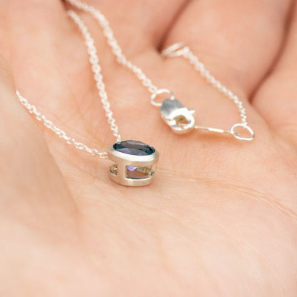Sterling silver round slide necklace with a purple Amethyst. The Amethyst is set in a modern bezel slide pendant. It hangs from an adjustable sterling silver chain. It's a perfect necklace to add a little bit of color and layer it with your favorite necklaces.