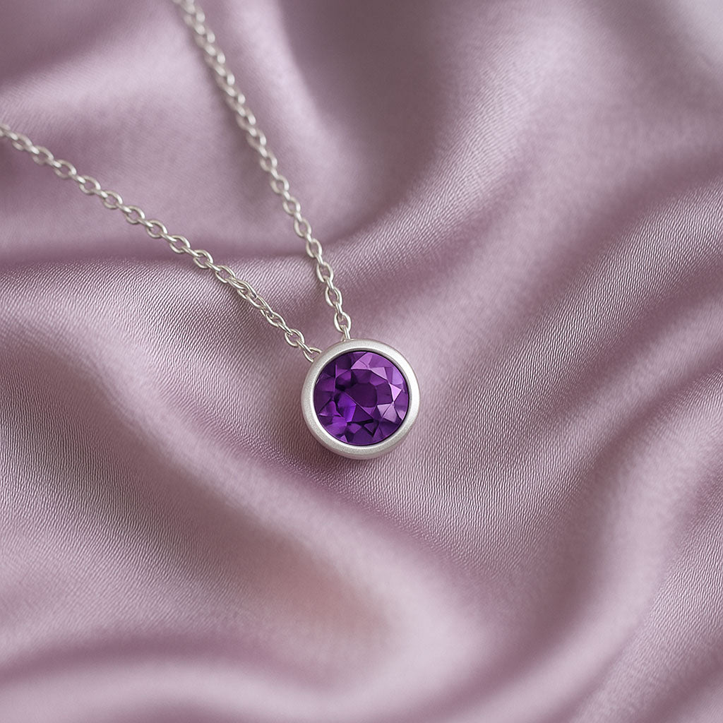 To care for an amethyst necklace, protect it from direct sunlight and high heat, as prolonged exposure can cause fading. Clean it regularly with warm, soapy water, using a soft brush to remove dirt. Avoid harsh chemicals and store it in a soft-lined jewelry box or pouch to prevent scratches.