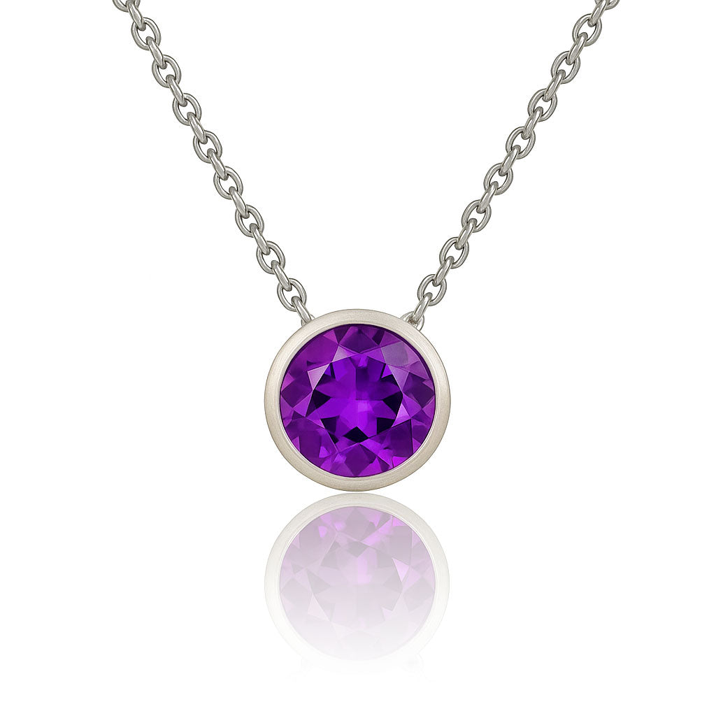 Round Amethyst Sterling Silver Slide Pendant Necklace