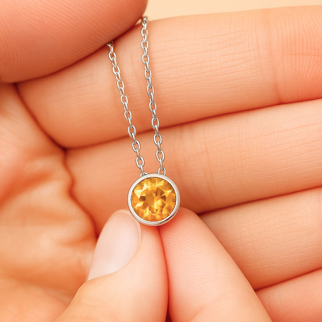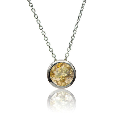 Round Citrine Sterling Silver Slide Pendant Necklace
