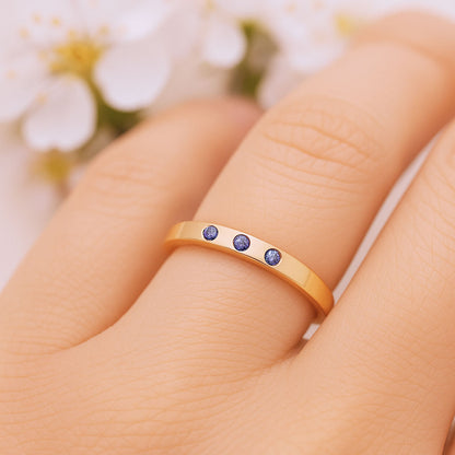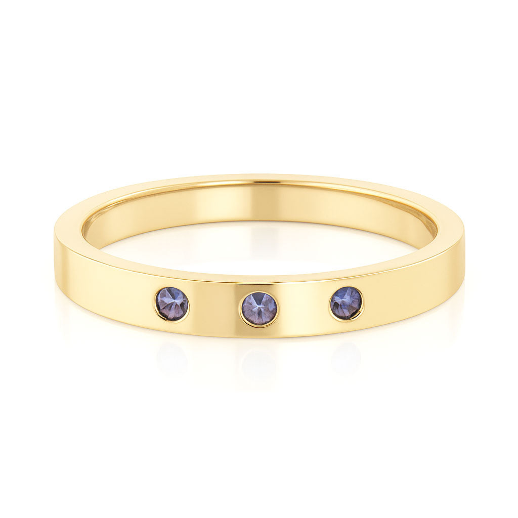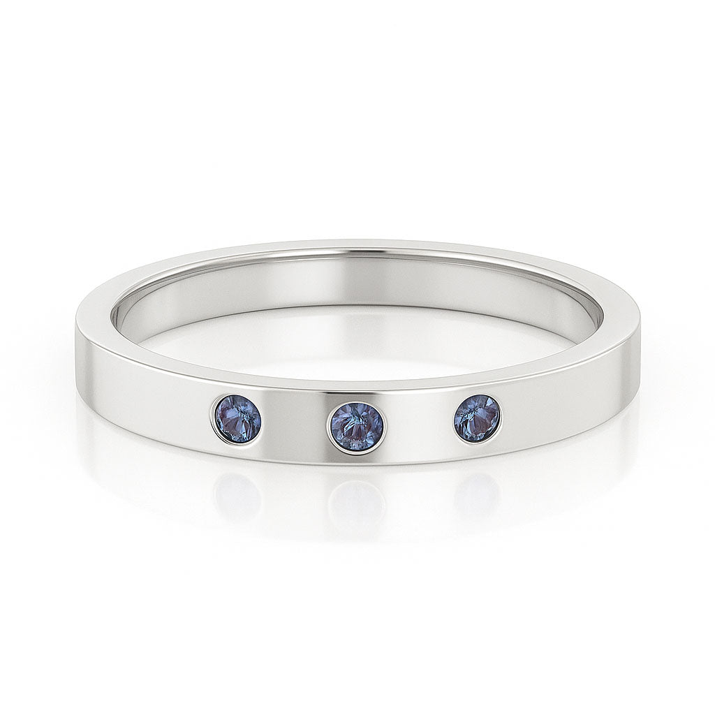 Sia Ring - Narrow 2.5mm wide 3 Alexandrite Flush Set Flat Wedding Band