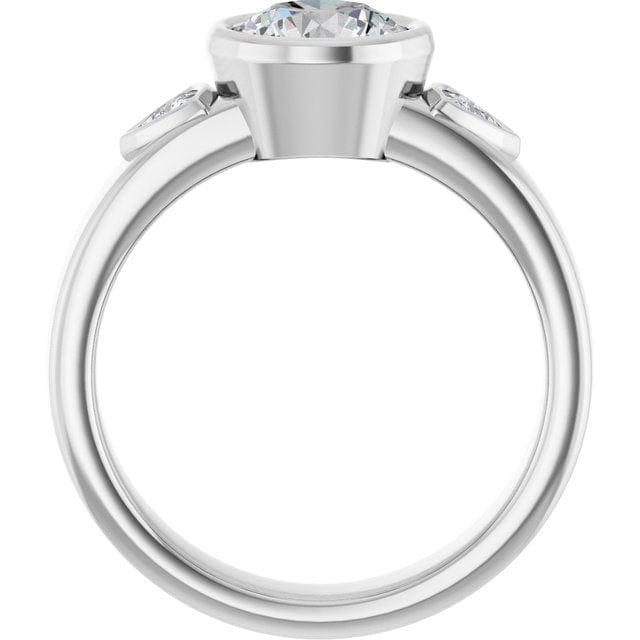 Trudy- Three Stone Bezel set Round Moissanite Engagement Ring with Trillion Side Accents