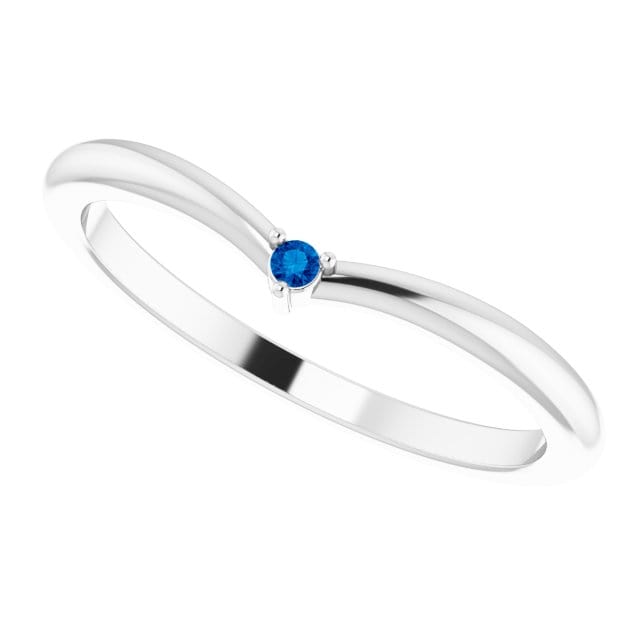 The Vani band. A delicate stacking V-shaped chevron wedding ring with a choice of prong set tiny diamond, moissanite, blue sapphire, or white sapphire in your chosen precious metal.