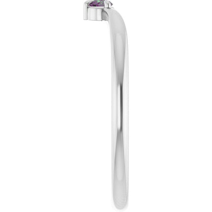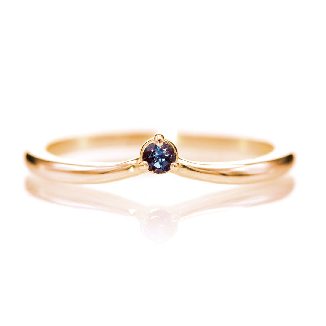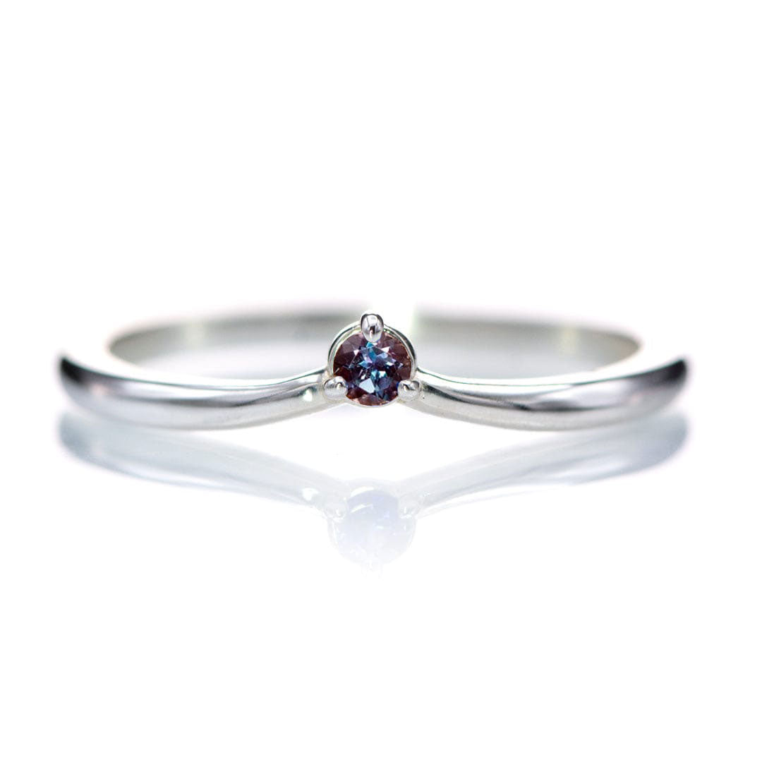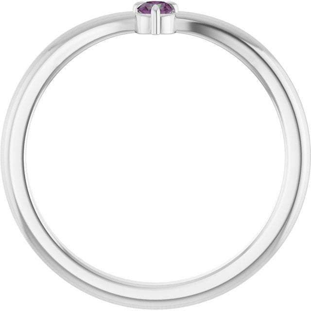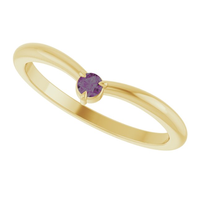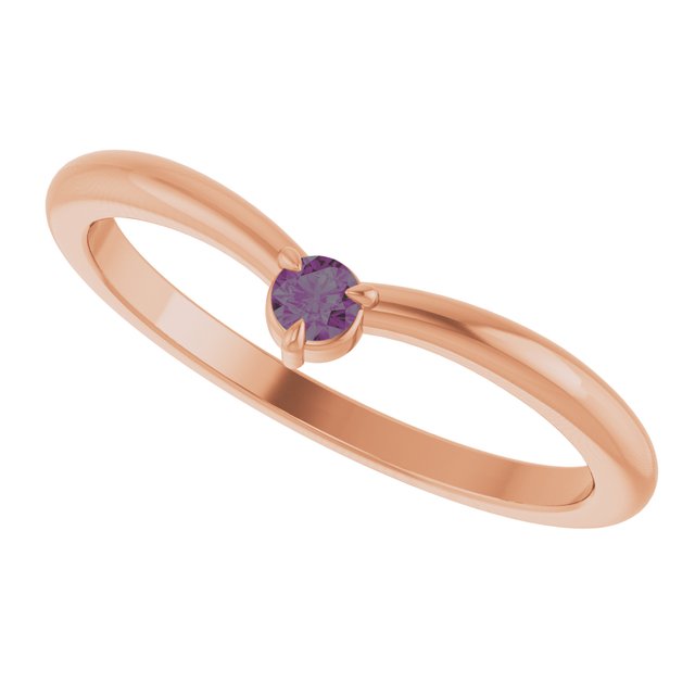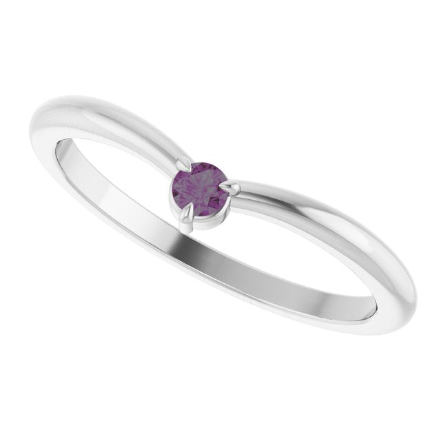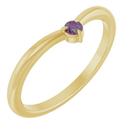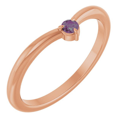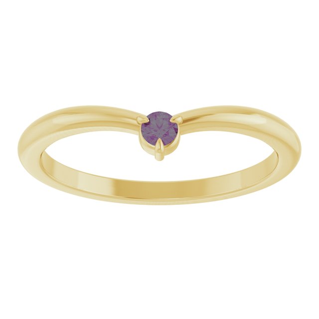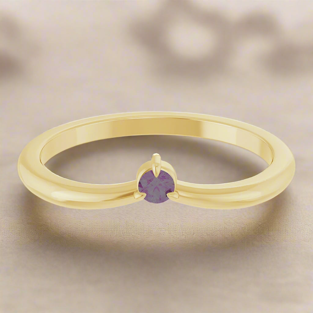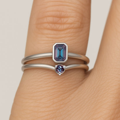 The Alexandrite Velma band is a stacking V-shaped chevron wedding ring with a lab grown alexandrite accent in your chosen precious metal.