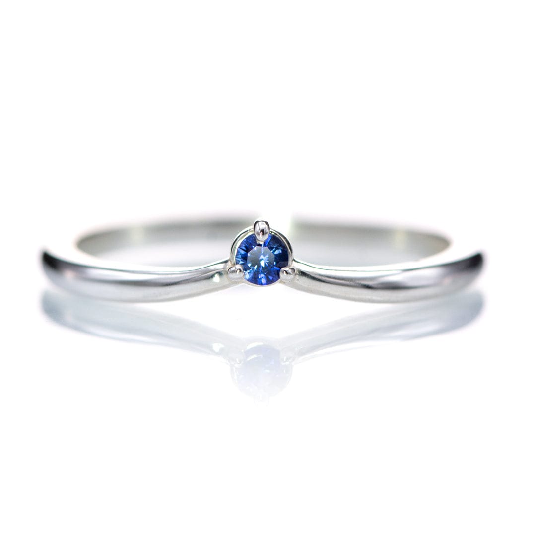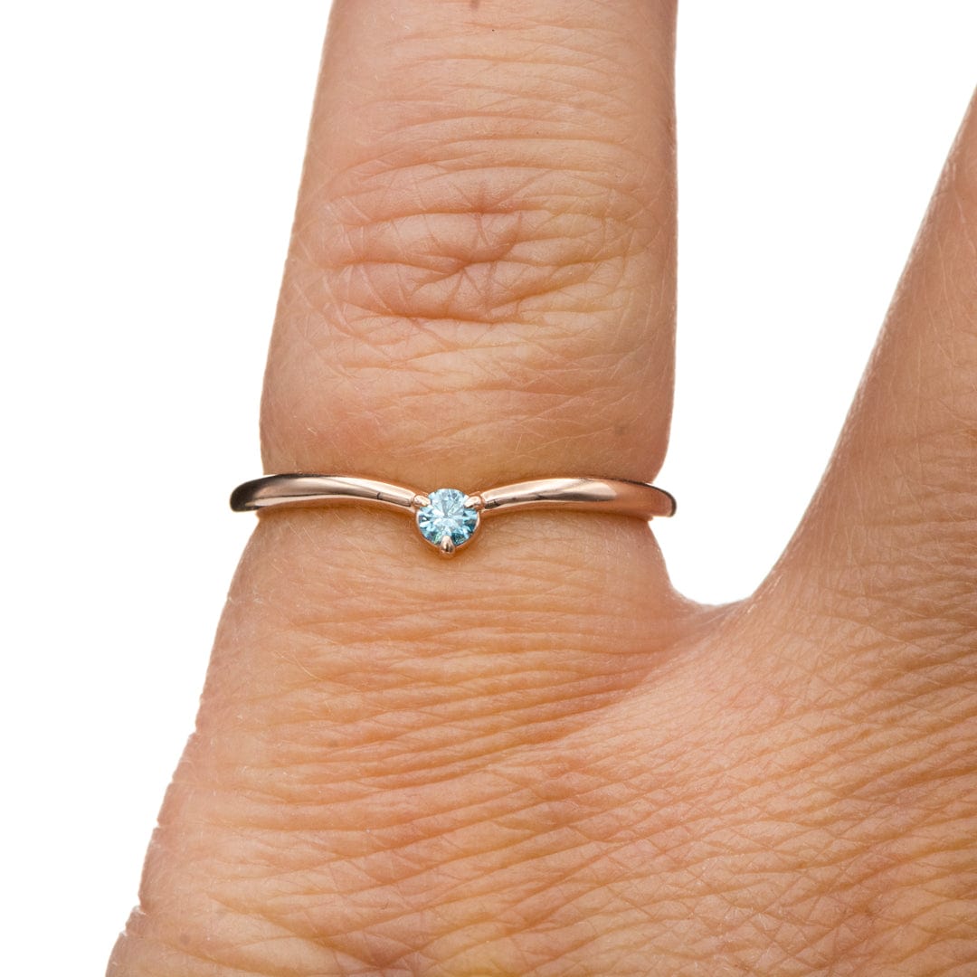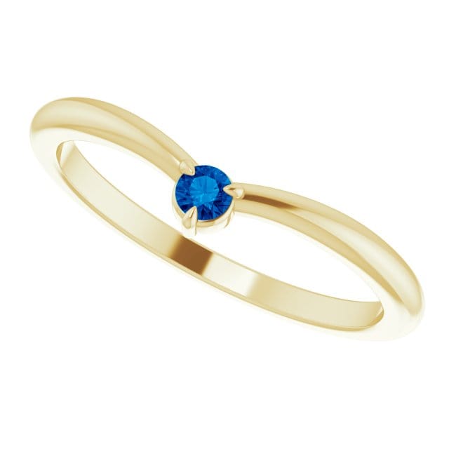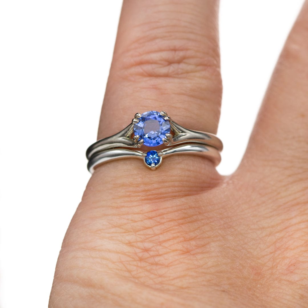 The Velma band. A stacking V-shaped chevron wedding ring with a choice of prong set diamond, moissanite, blue sapphire, or white sapphire in your chosen precious metal.