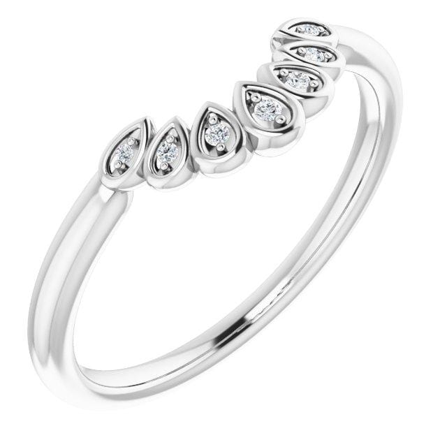 Vintage inspired contoured diamond stacking ring wedding band. The diamonds curve at the top in tear drop shaped frames.