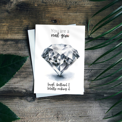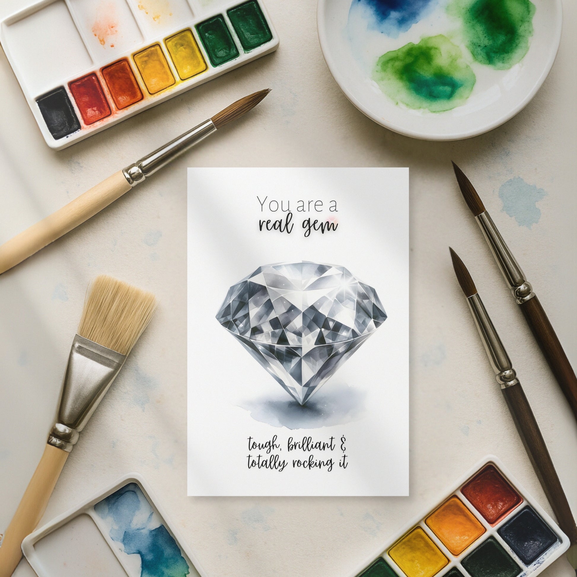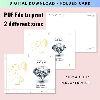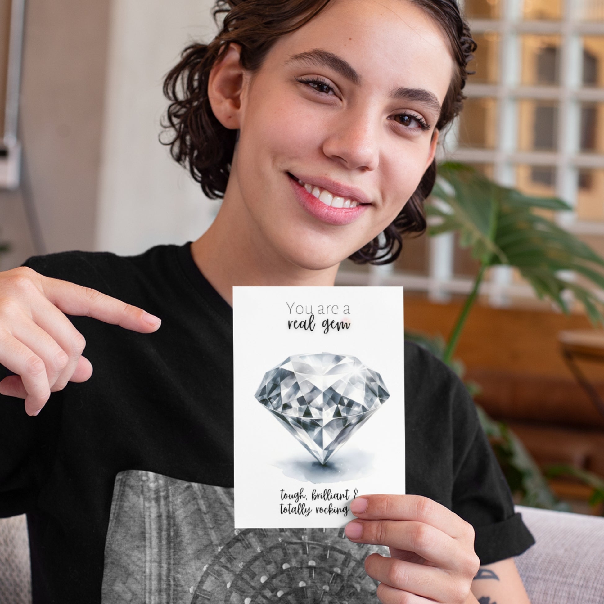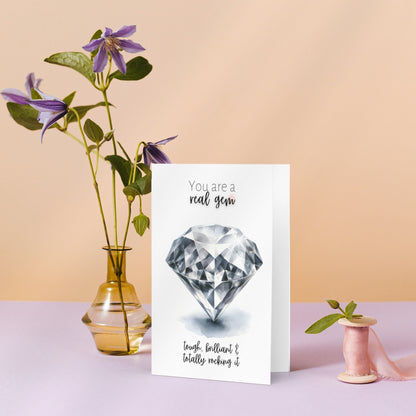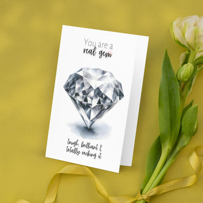 Celebrate your loved ones with our "You are a real gem" Watercolor Diamond folded card! Perfect for birthdays, Mother's Day, or just to say thanks to a precious gem in your life. With unique gemstone art and a playful tone, it's sure to make them feel extra special!