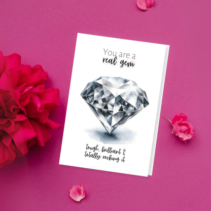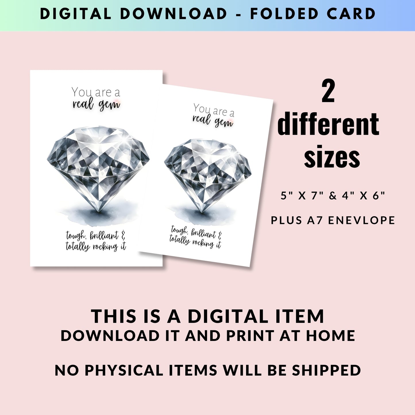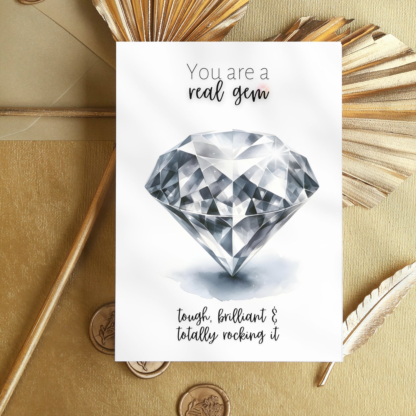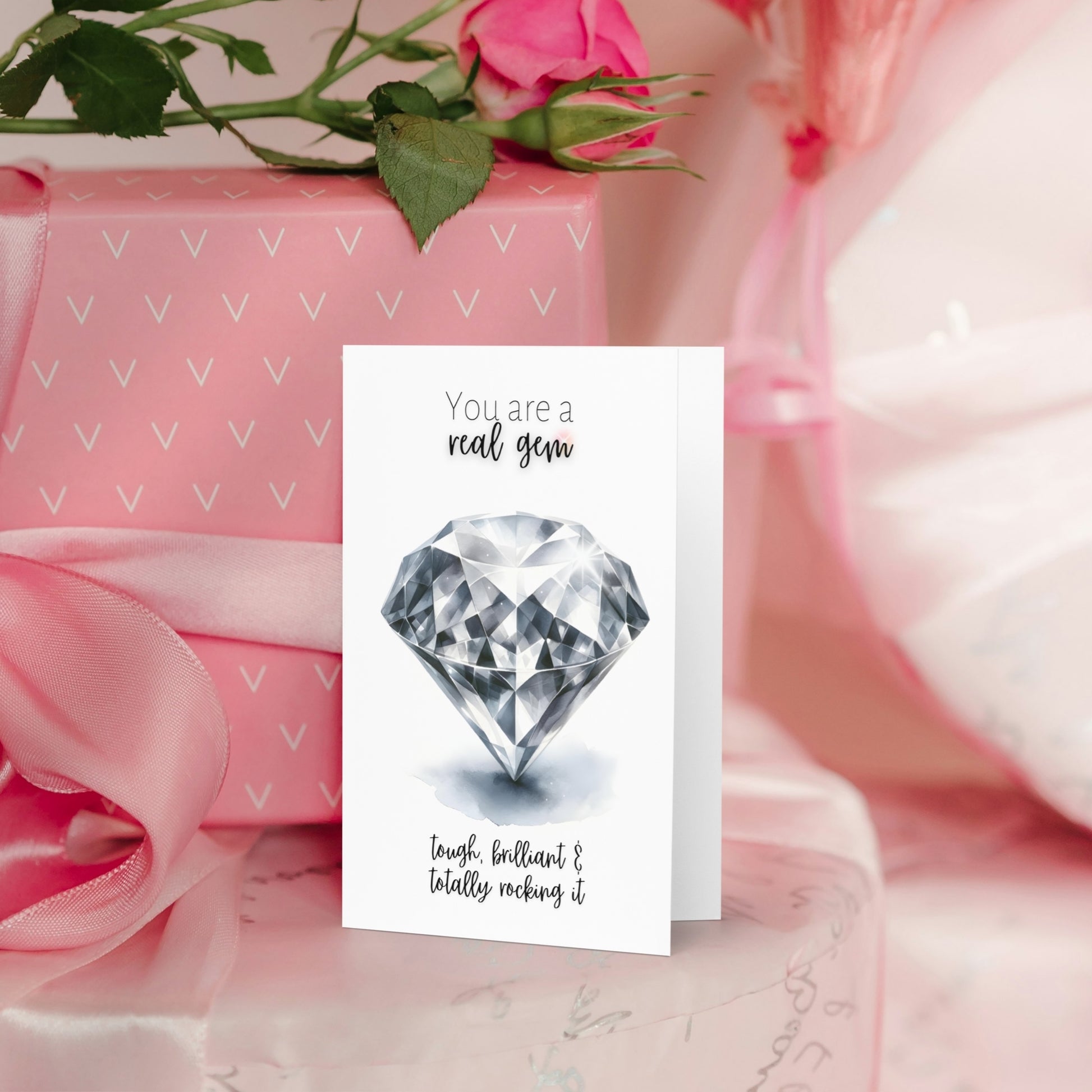 Celebrate your loved ones with our "You are a real gem" Watercolor Diamond folded card! Perfect for birthdays, Mother's Day, or just to say thanks to a precious gem in your life. With unique gemstone art and a playful tone, it's sure to make them feel extra special!