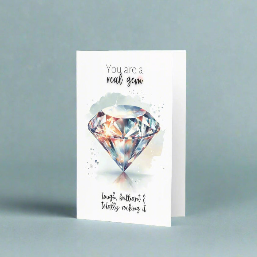 Celebrate your loved ones with our "You are a real gem" Watercolor Diamond card! Perfect for April birthdays, anniversaries, Mother's Day, or just to say thanks to a precious and brilliant gem in your life. With unique gemstone art and a playful tone, it's sure to make them feel extra special.