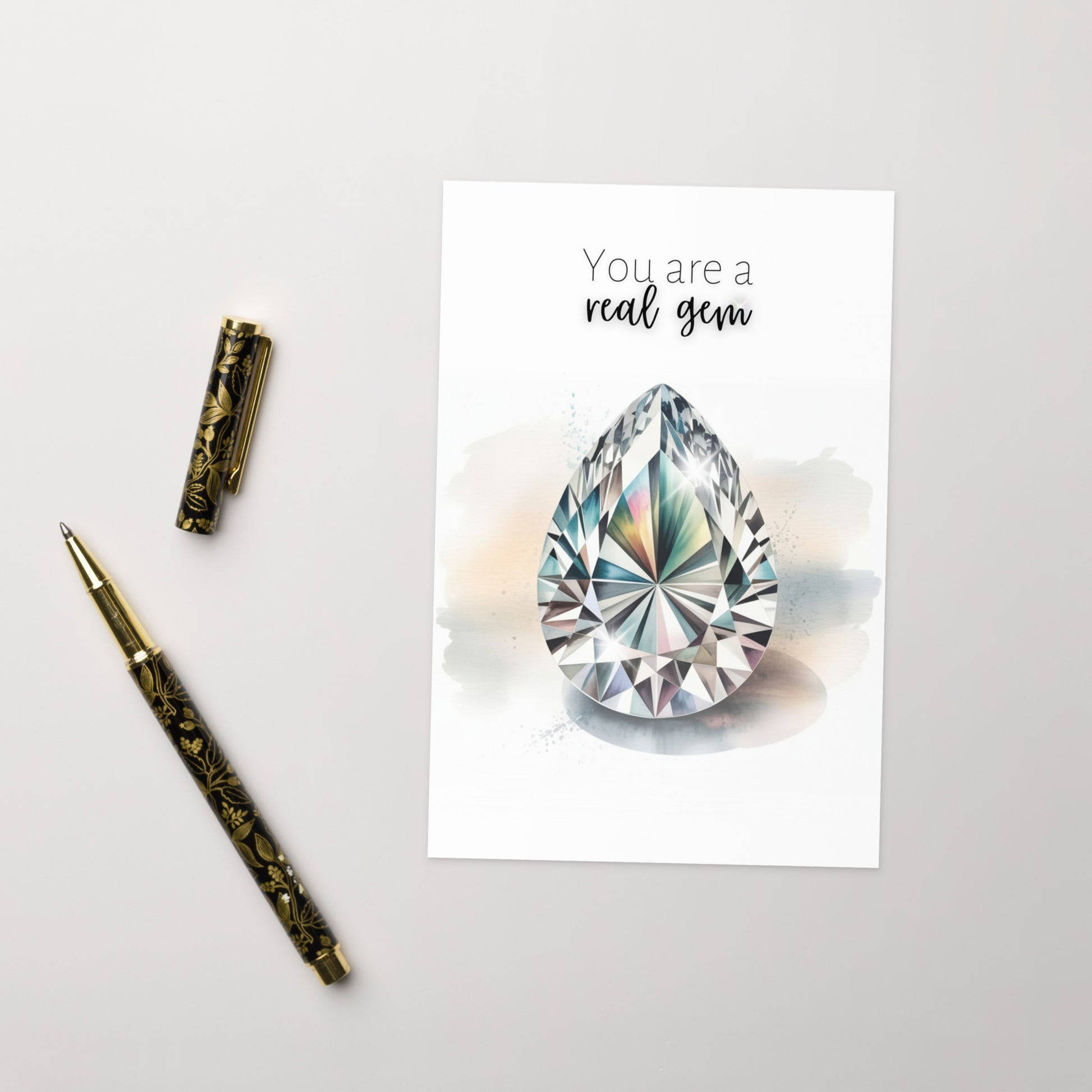You are a real Gem | Watercolor Pear Cut Diamond Folded Card