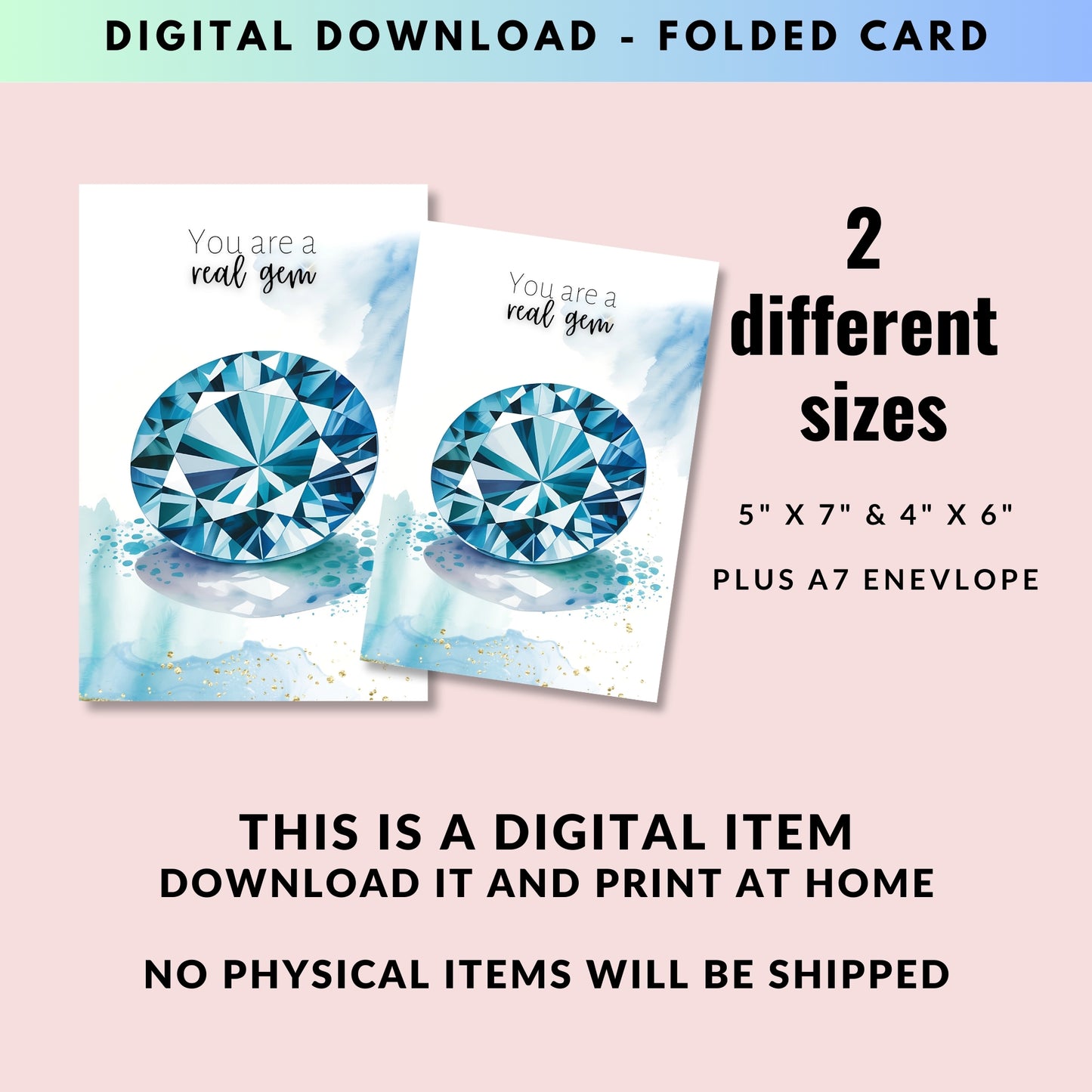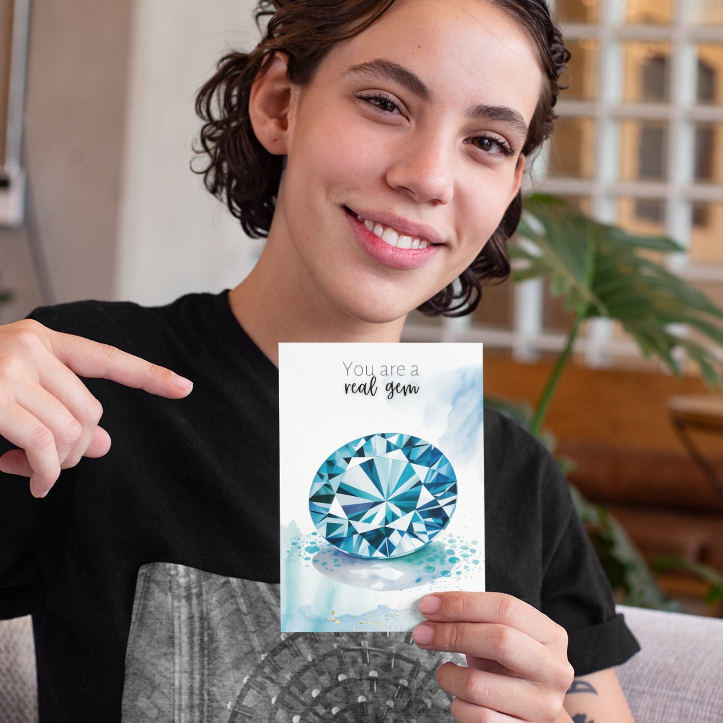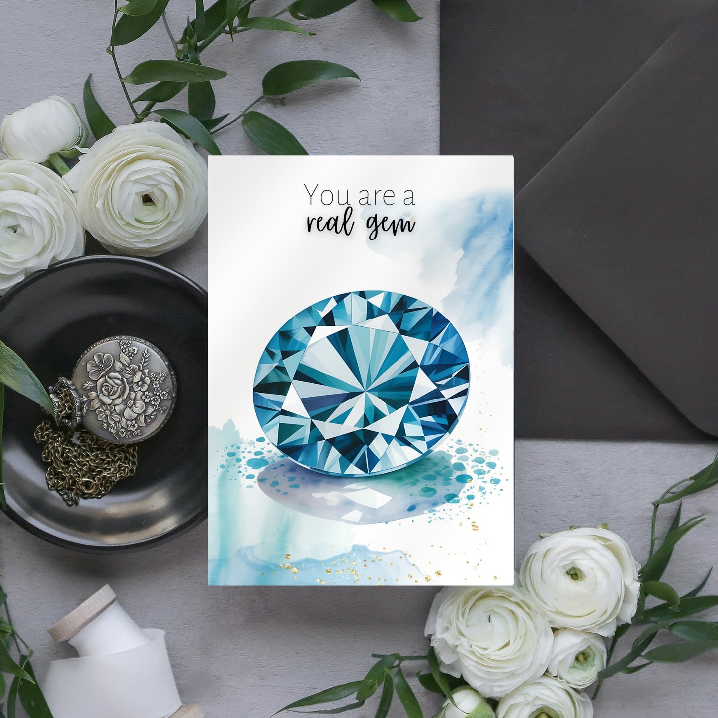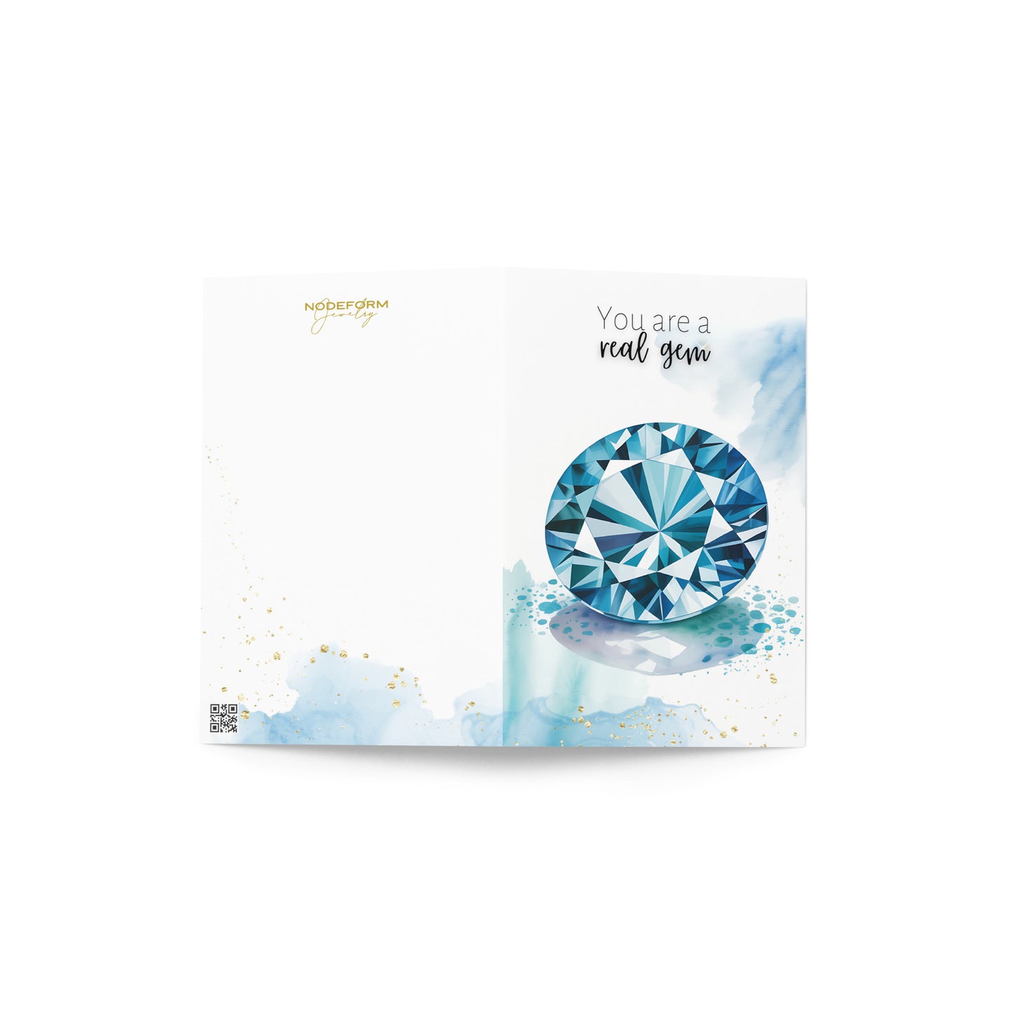 Celebrate special occasions or show appreciation to a cherished gem with this  "You are a real gem" watercolor London Blue Topaz card! Perfect for birthdays, Valentine's Day, Mother's Day, or just to say thanks to a precious gem in your life. Featuring exquisite topaz gemstone illustration and a heartfelt message, this folded card is guaranteed to make them feel truly exceptional.