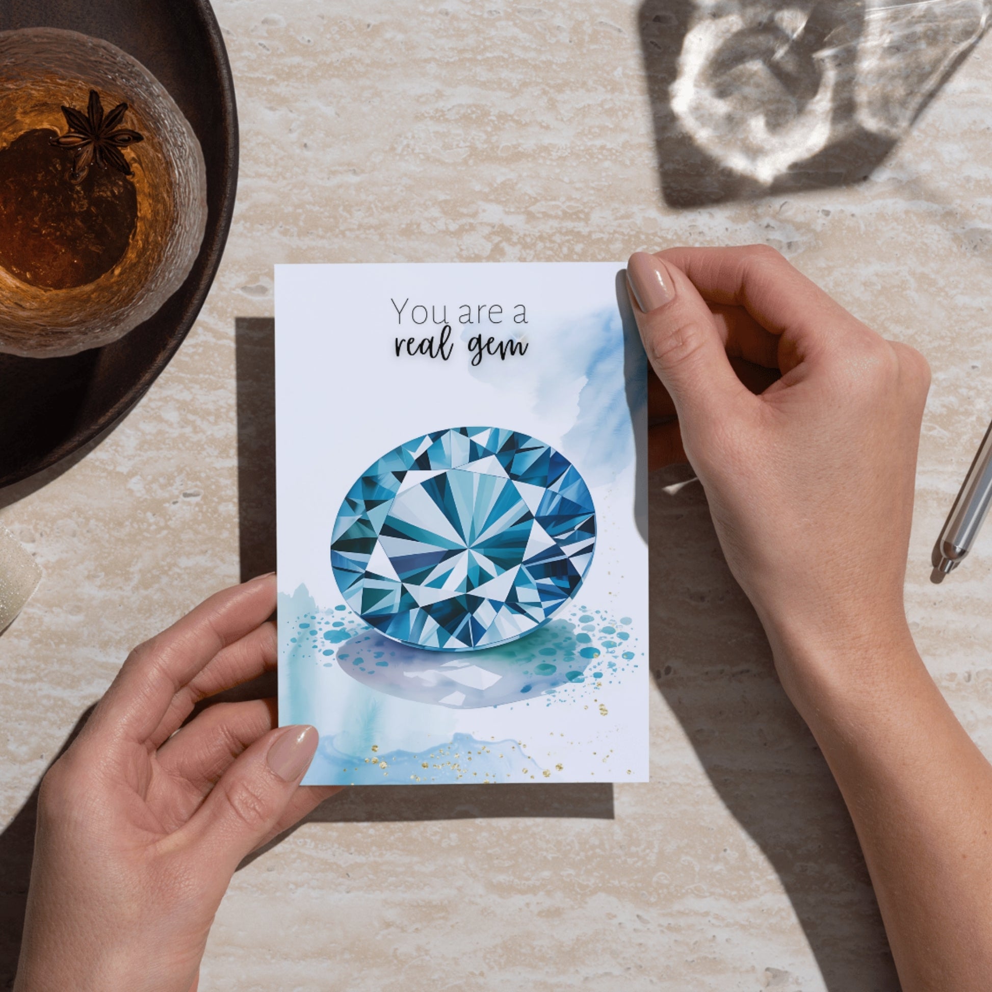 You are a real gem | Watercolor London Blue Topaz Greeting Card