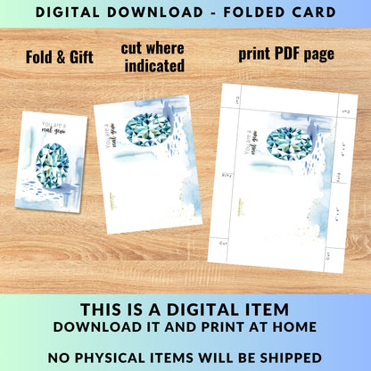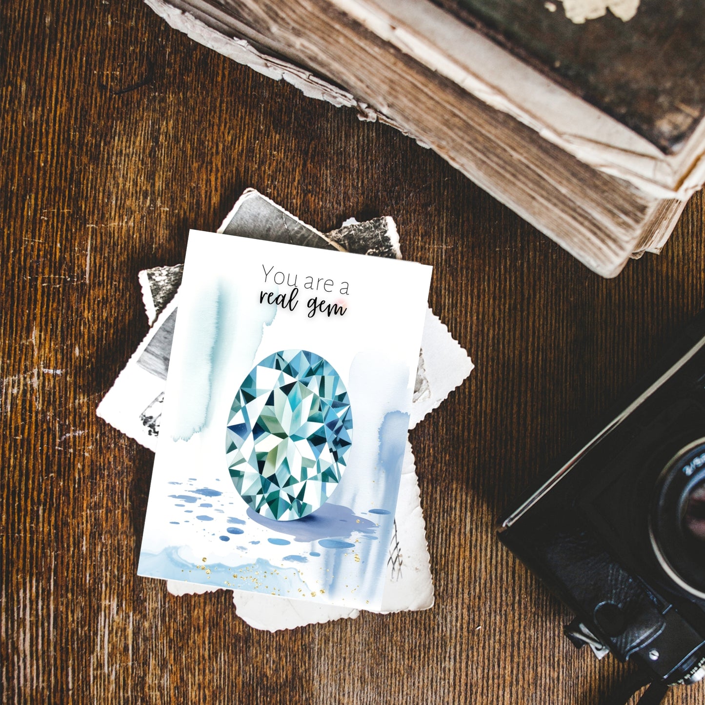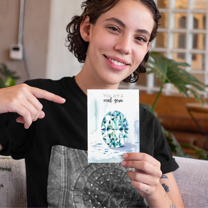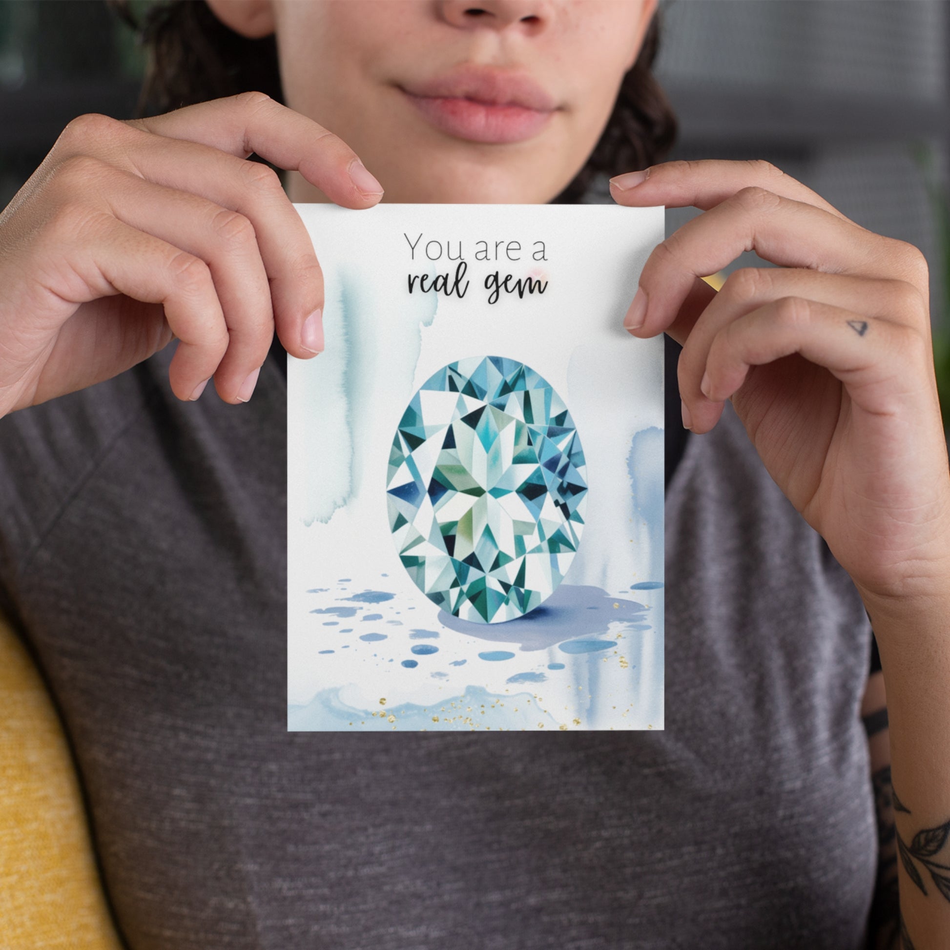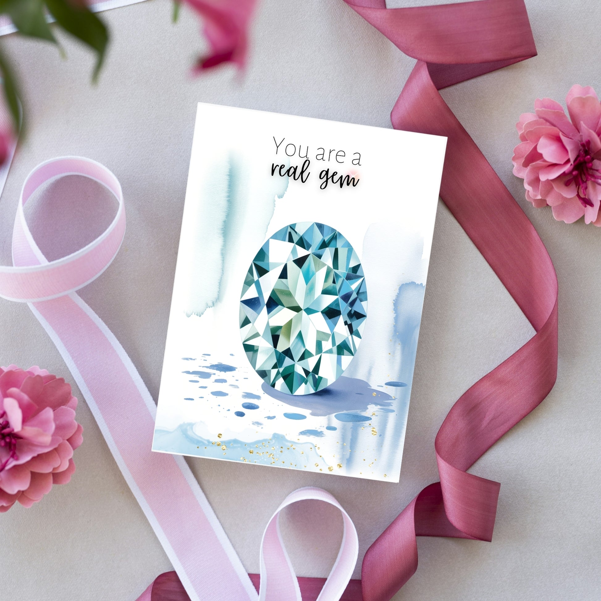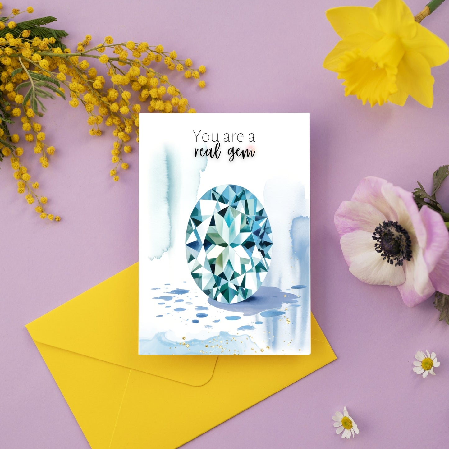 Celebrate your loved ones with our "You are a real gem" Watercolor Oval Aquamarine card! Perfect for March birthdays, Valentine's or Mother's Day, or just to say thanks to a precious gem in your life. With unique gemstone art and a playful tone, it's sure to make them feel extra special!