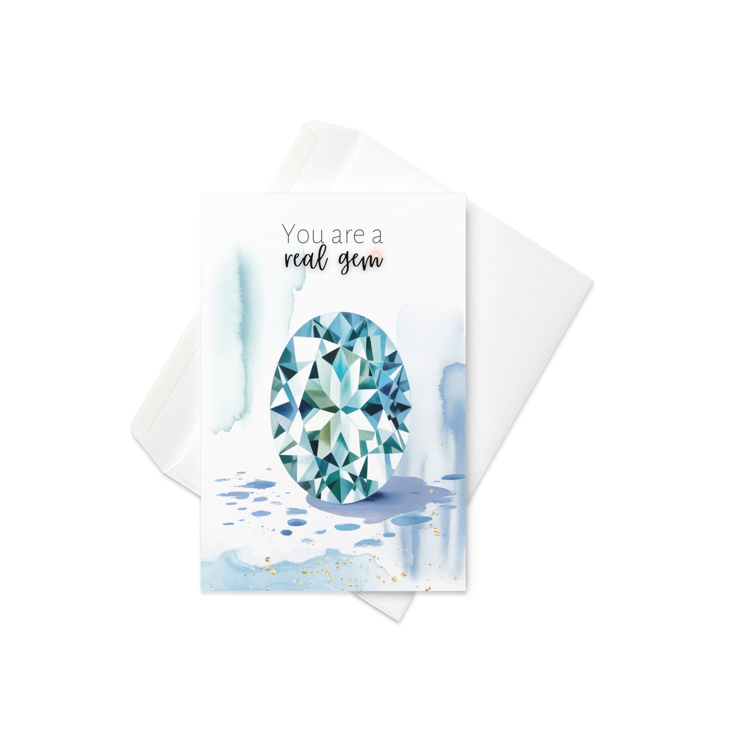 You are a real Gem | Watercolor Oval Aquamarine Greeting Card