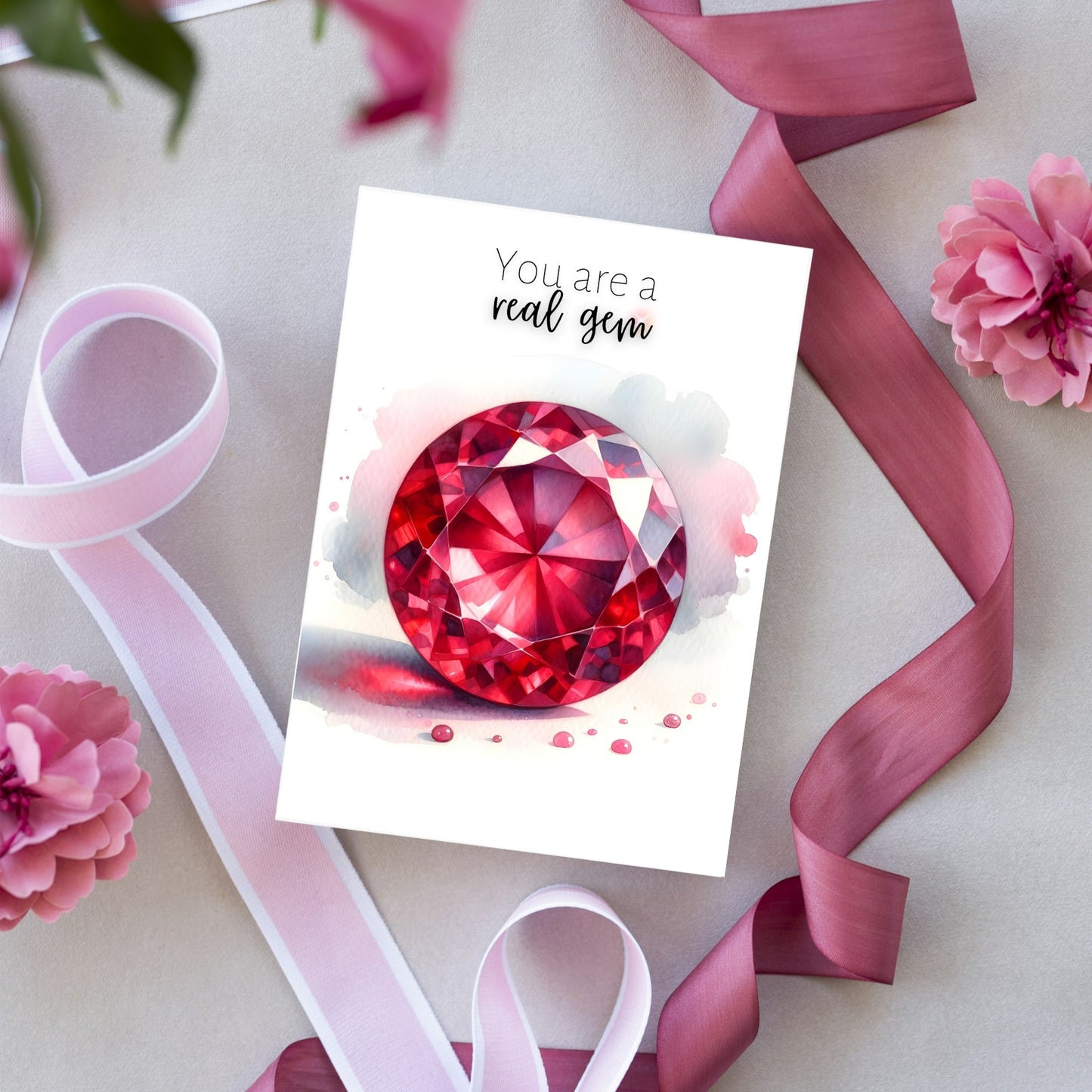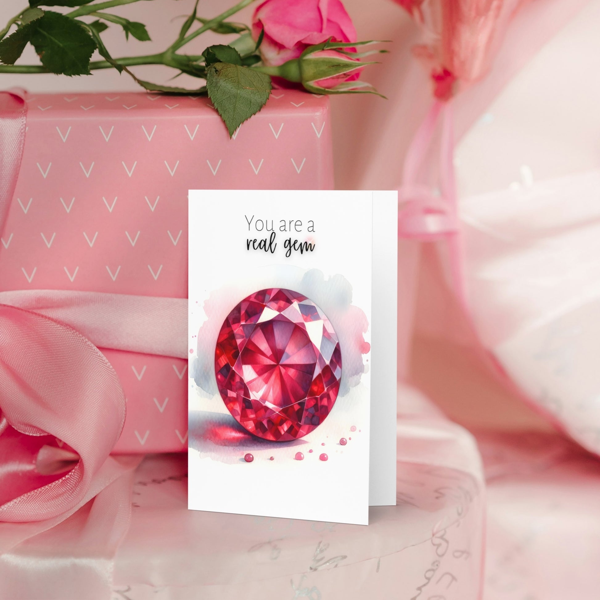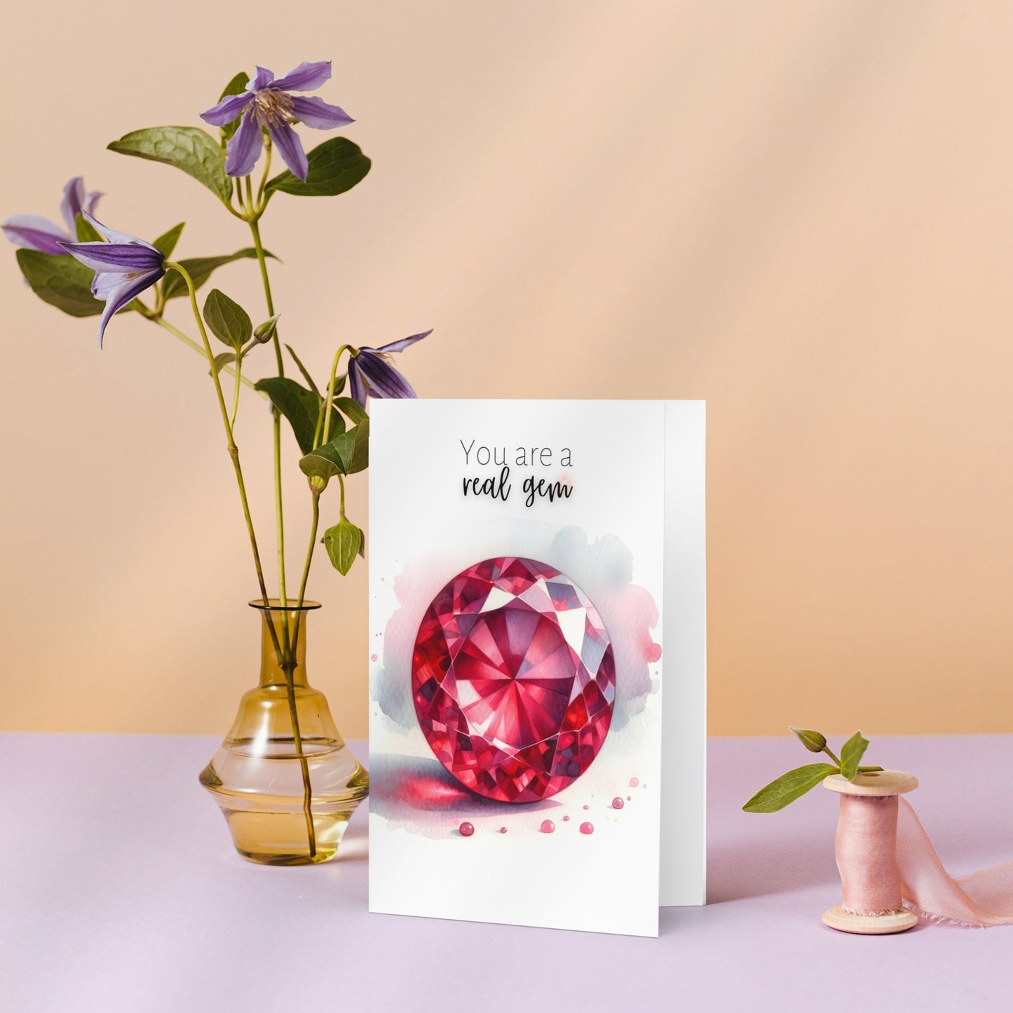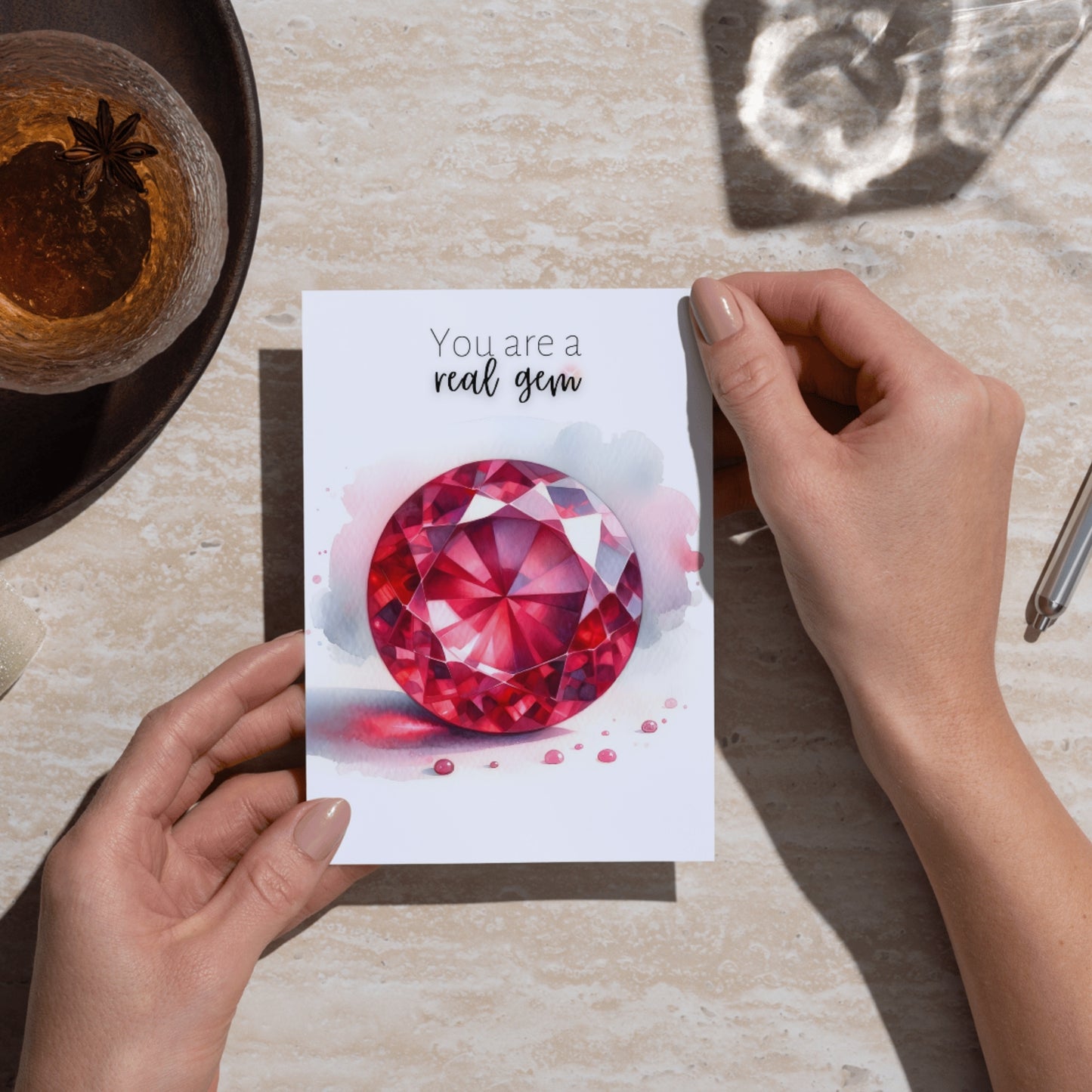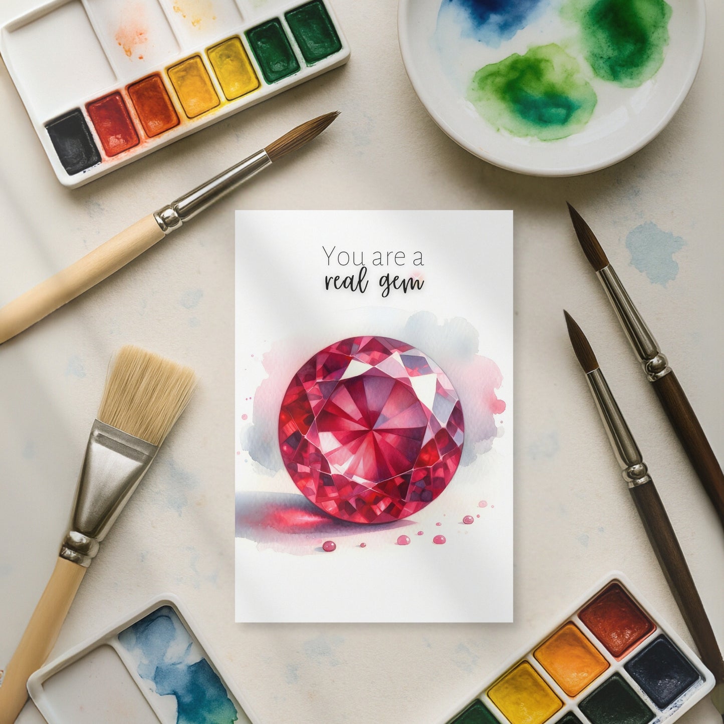 You are a real Gem | Watercolor Round Ruby Greeting Card