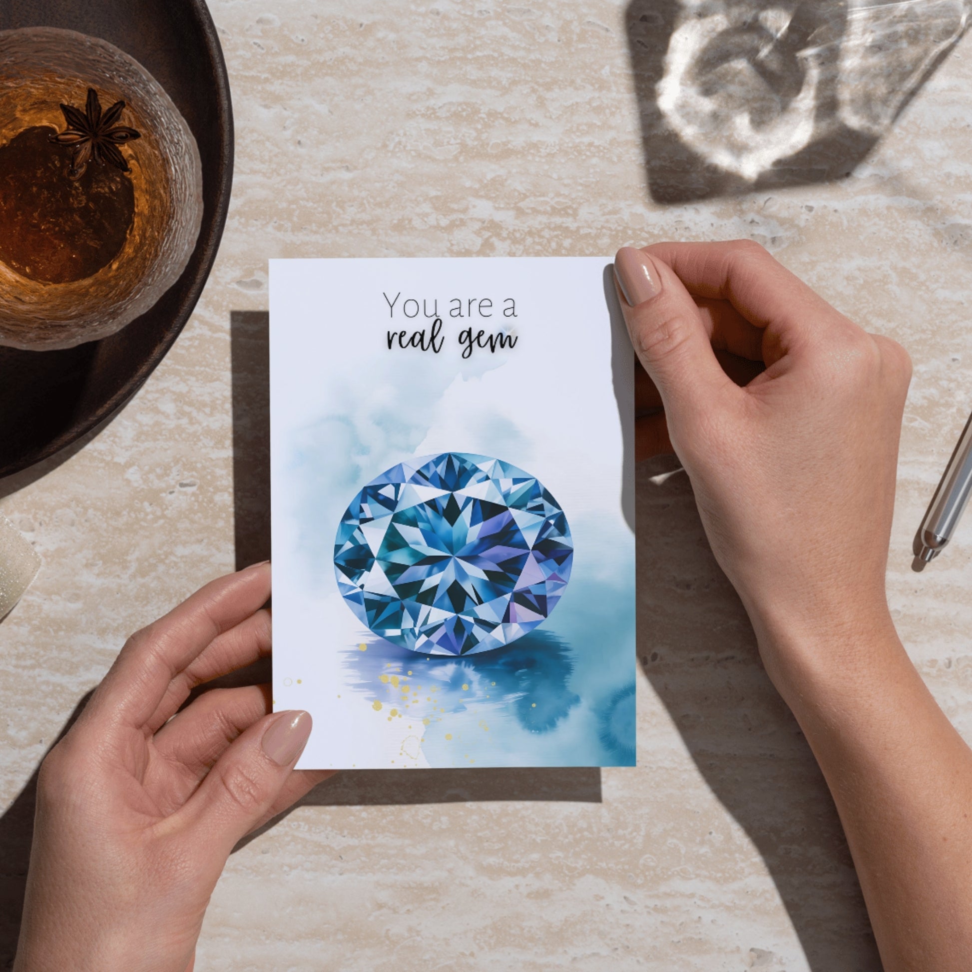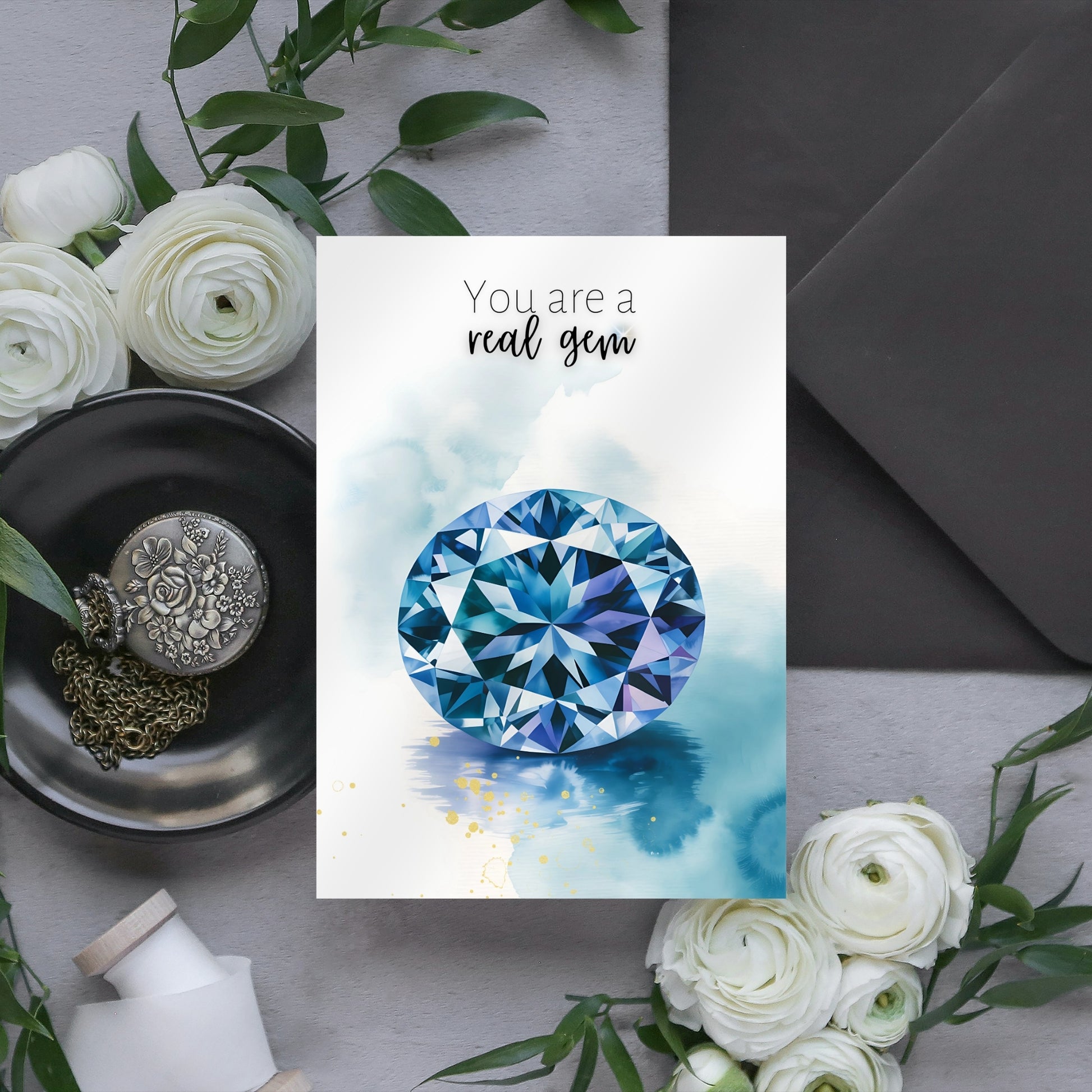 Give the gift of recognition and beauty. The "You Are a Real Gem" Watercolor Tanzanite Card is both an art piece and a keepsake, turning a simple note into a meaningful gesture for the gems in your life.